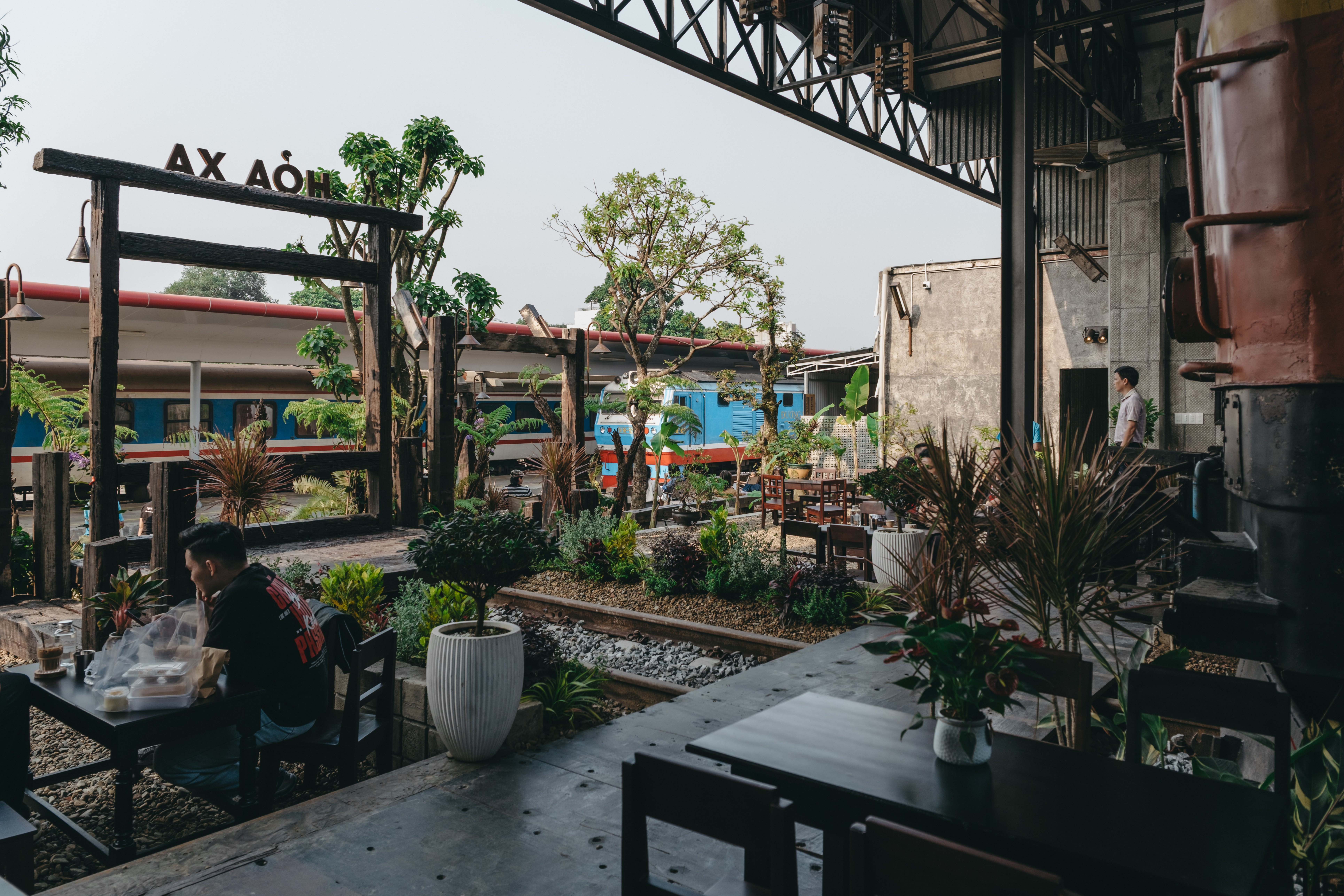Buổi sáng, quán đón tiếp khá đông thực khách, nhiều người vừa uống cà phê vừa chụp ảnh. Theo Vy, đây là một trong số ít địa điểm tại Huế có không gian rộng, sở hữu tầm nhìn trực tiếp ra khu vực ga tàu, mang lại trải nghiệm khác biệt.