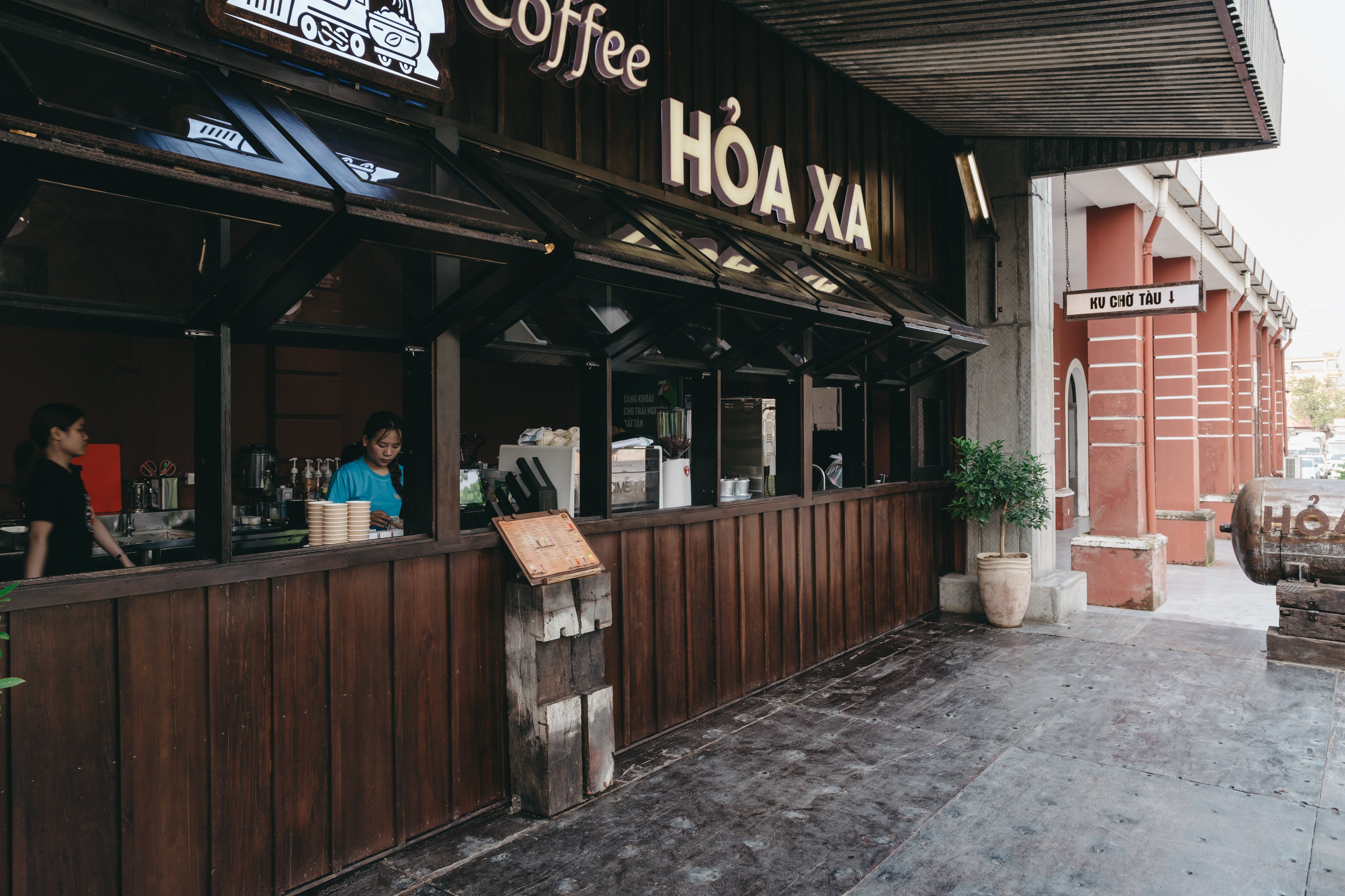 Quán có diện tích rộng, nhiều cây xanh và nhiều góc chụp hình, phù hợp nhu cầu check-in của du khách. Trên thực tế, mô hình cà phê Hỏa Xa được xem là một mắt xích trong chiến lược "mỗi nhà ga là một điểm đến" của Tổng công ty đường sắt Việt Nam. Mô hình này đã có mặt tại một số ga lớn trên mạng lưới đường sắt quốc gia: như ga Long Biên, ga Hải Dương và ga Diêu Trì.