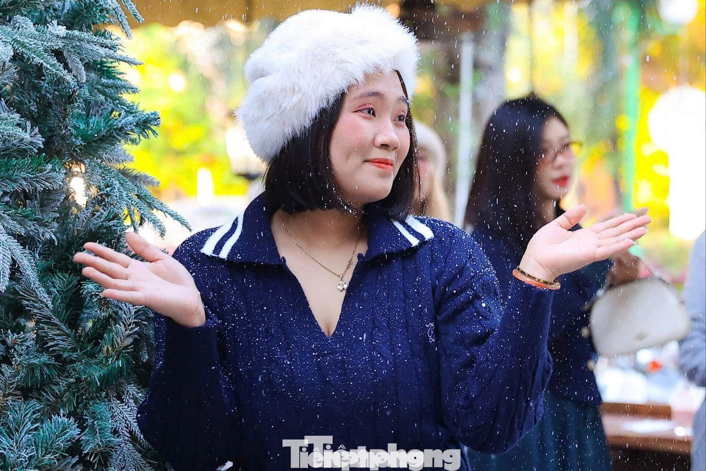 Khung cảnh “tuyết rơi trời Âu” giữa lòng Hà Nội tại một quán cà phê ở Hà Đông đang thu hút đông đảo bạn trẻ đến check-in dịp Noel.