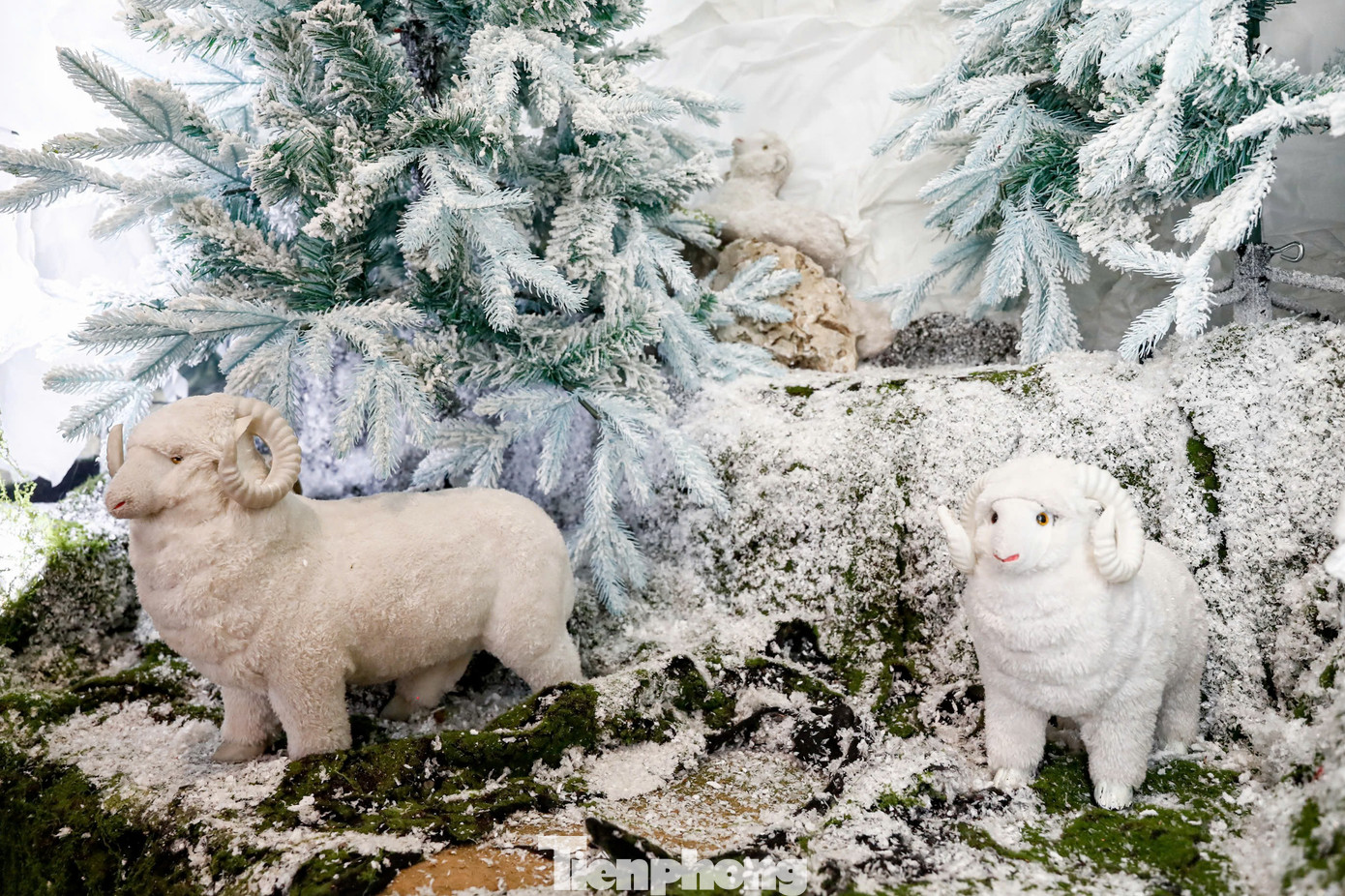 Các địa điểm này nổi bật với không gian được trang trí lộng lẫy, bao gồm cây thông rực rỡ ánh đèn, cùng các phụ kiện như gấu bông, cừu, lò sưởi... tạo nên khung cảnh lãng mạn như một "ngôi làng tuyết".