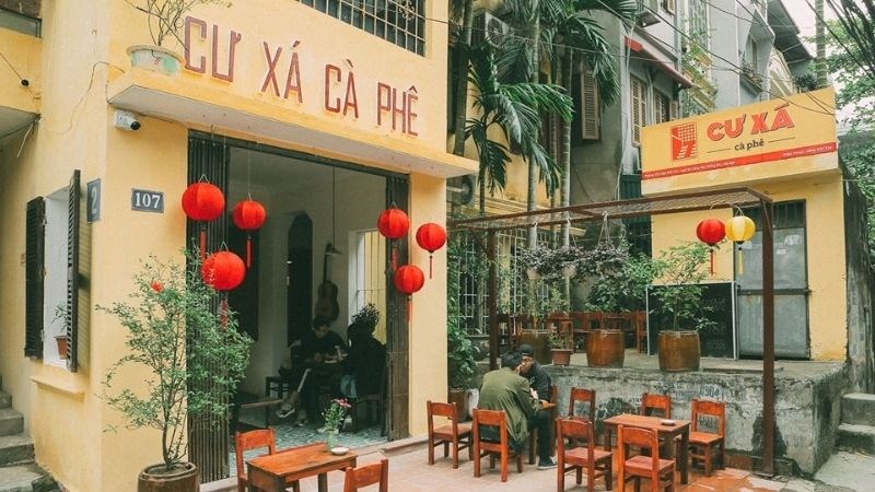 Một trong những địa điểm mang đậm dấu ấn hoài cổ là Cư Xá Cà phê tại 60 ngõ 40 Tạ Quang Bửu. Đến đây, nhiều người có cảm giác như quay trở lại những năm đầu thập niên 90 với mảng tường sơn vàng, khung cửa sổ xanh và những vật dụng quen thuộc như đài radio cũ, chiếc tivi nhỏ... Bàn ghế gỗ đơn giản góp phần tạo nên không khí ấm áp, gợi nhớ nhiều ký ức xưa.