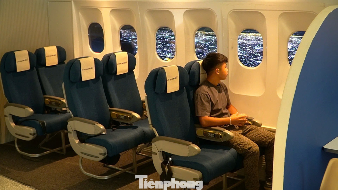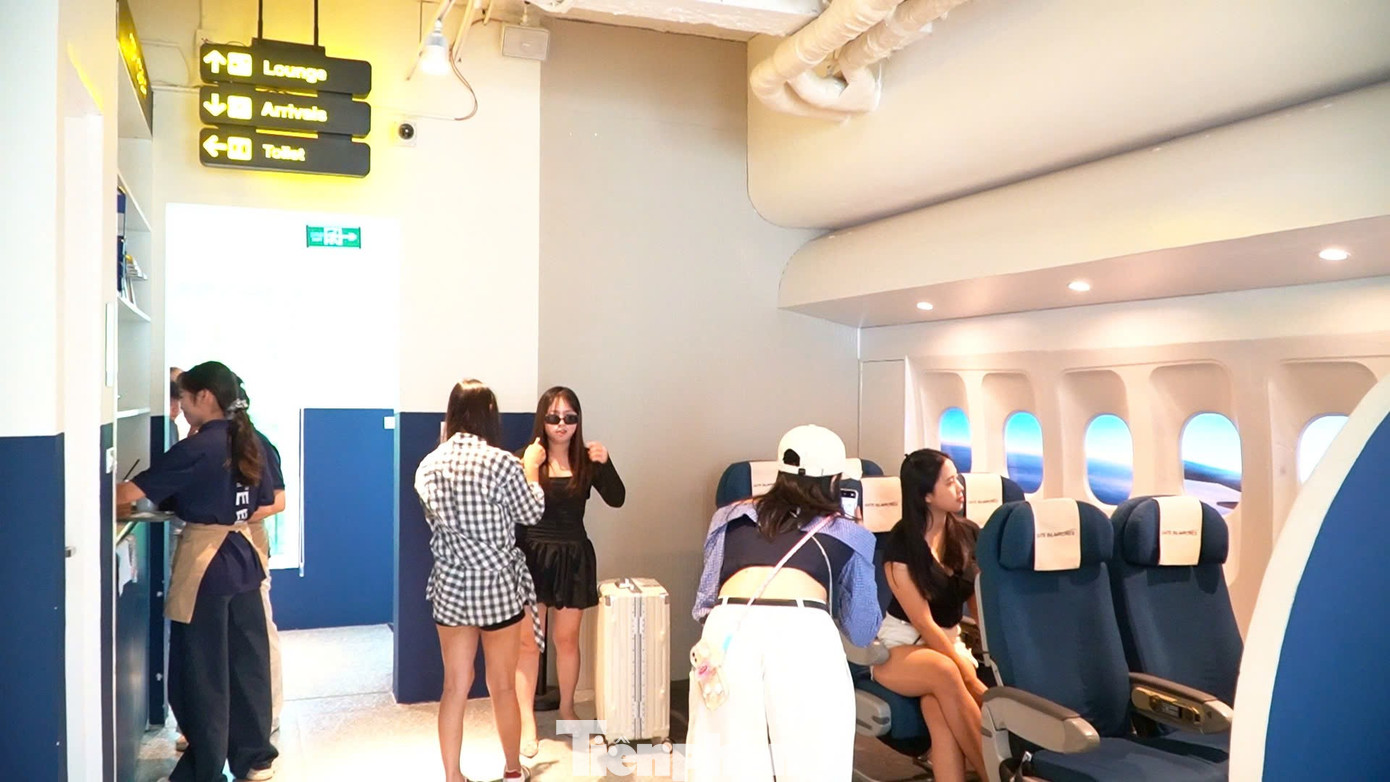 Nhiều bạn trẻ lựa chọn quán làm điểm hẹn để ngồi chill, tán gẫu và trải nghiệm không gian giả lập phòng chờ sân bay.