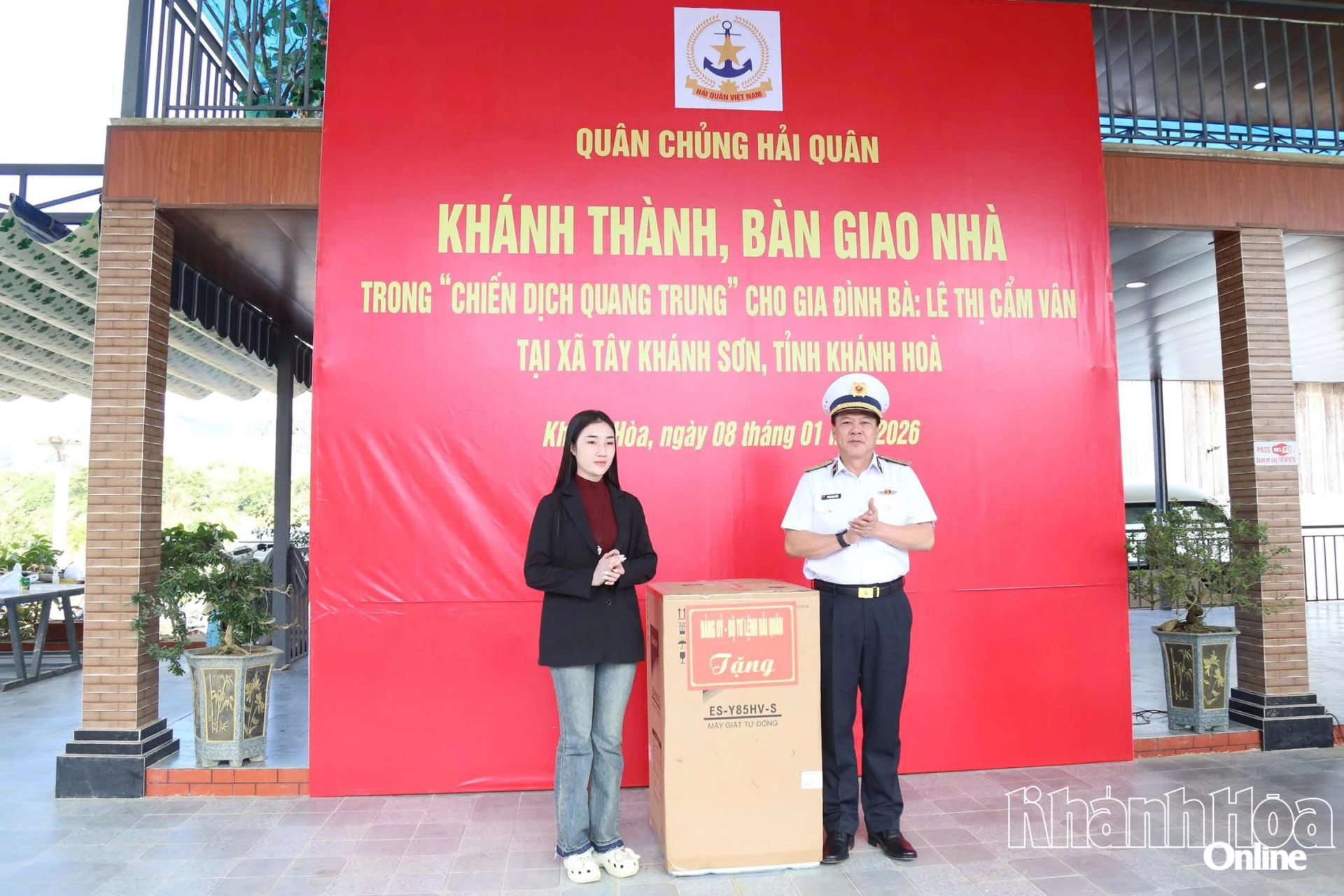 Ngày 8-1, Quân chủng Hải quân tổ chức lễ khánh thành và bàn giao nhà trong "Chiến dịch Quang Trung" cho gia đình bà Lê Thị Cẩm Vân (thôn Du Oai, xã Tây Khánh Sơn).