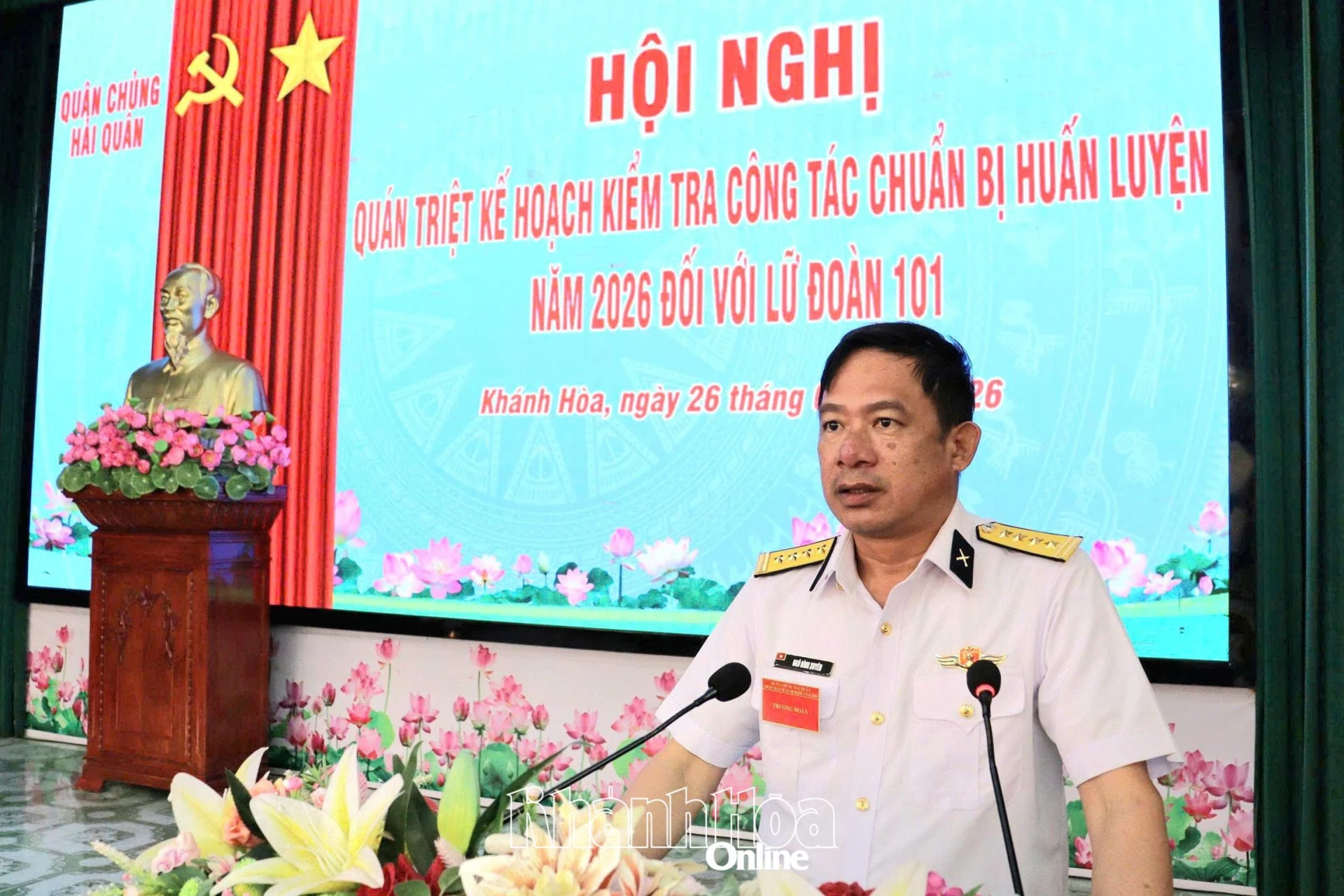 Ngày 26-1, đoàn công tác của Quân chủng Hải quân do Đại tá Ngô Đình Xuyên - Phó Tham mưu trưởng Hải quân làm trưởng đoàn đến kiểm tra công tác chuẩn bị huấn luyện năm 2026 đối với Lữ đoàn 101, Vùng 4 Hải quân.