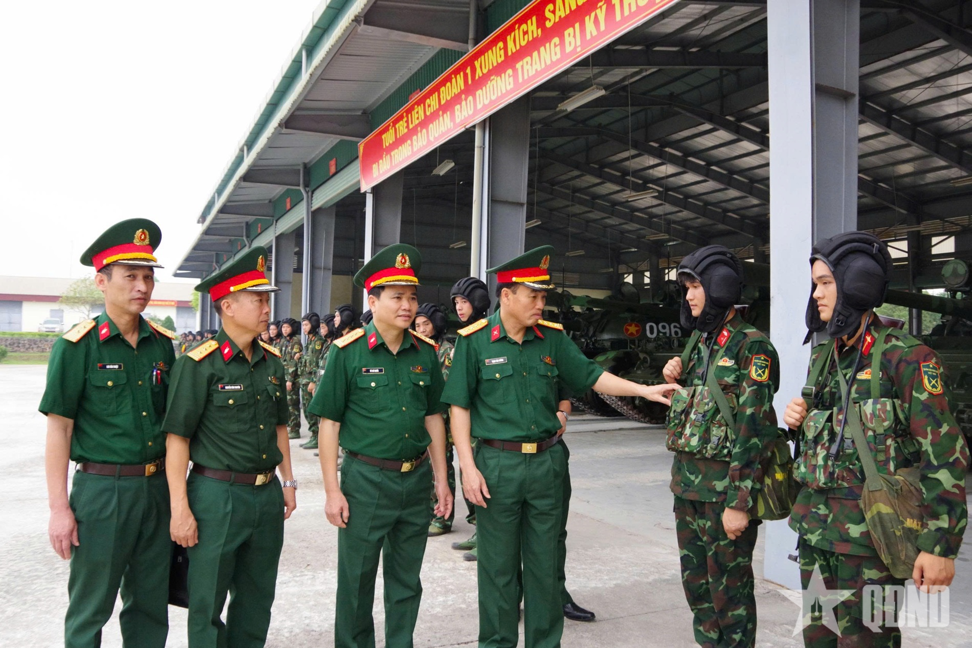 Đại tá Trịnh Văn Cường, Phó tham mưu trưởng Quân đoàn 12 động viên cán bộ, chiến sĩ Tiểu đoàn Tăng 1, Lữ đoàn 203.