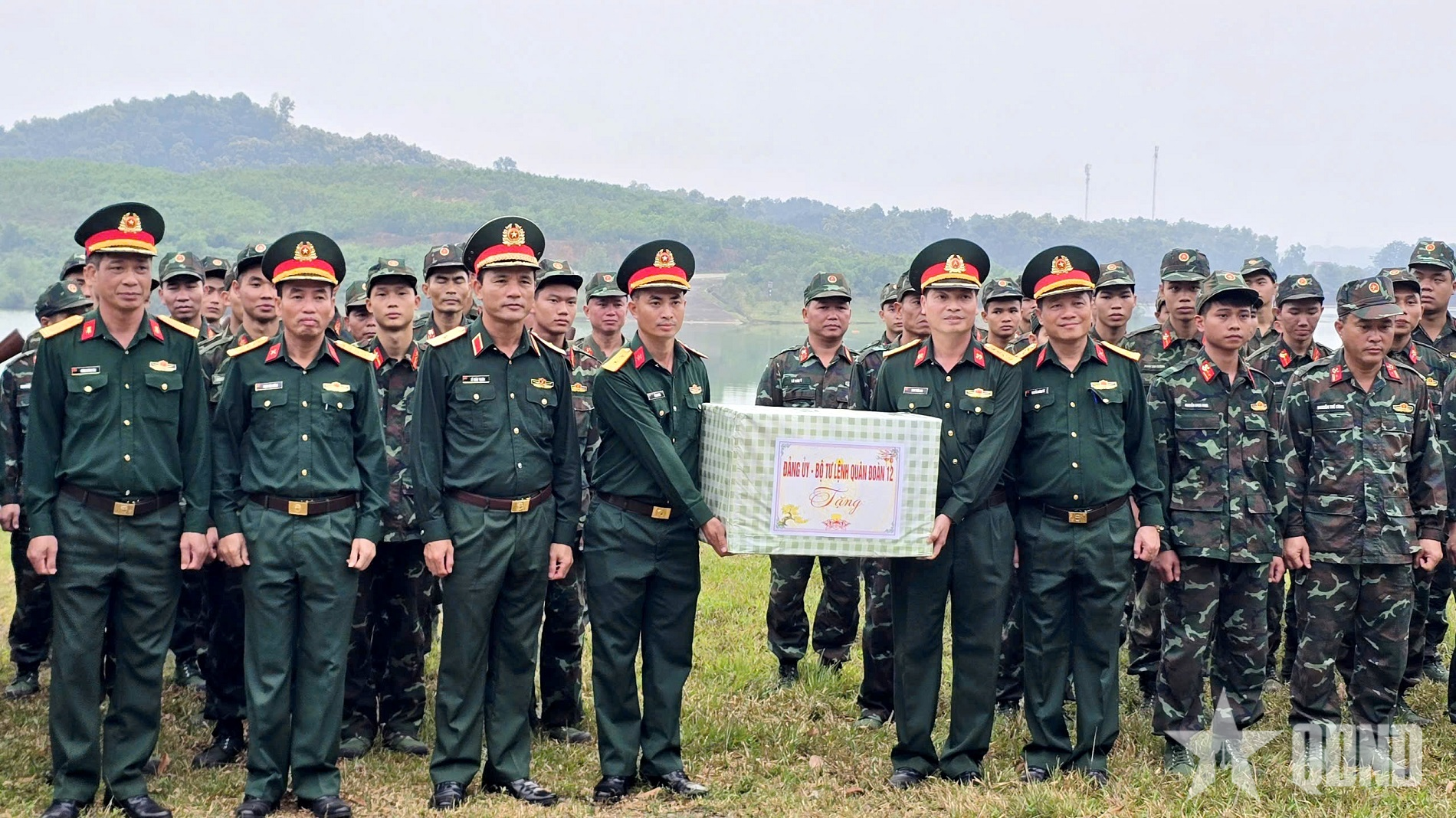 Đồng chí Tư lệnh Quân đoàn 12 tặng quà, động viên cán bộ, chiến sĩ luyện tập tham gia hội thao.