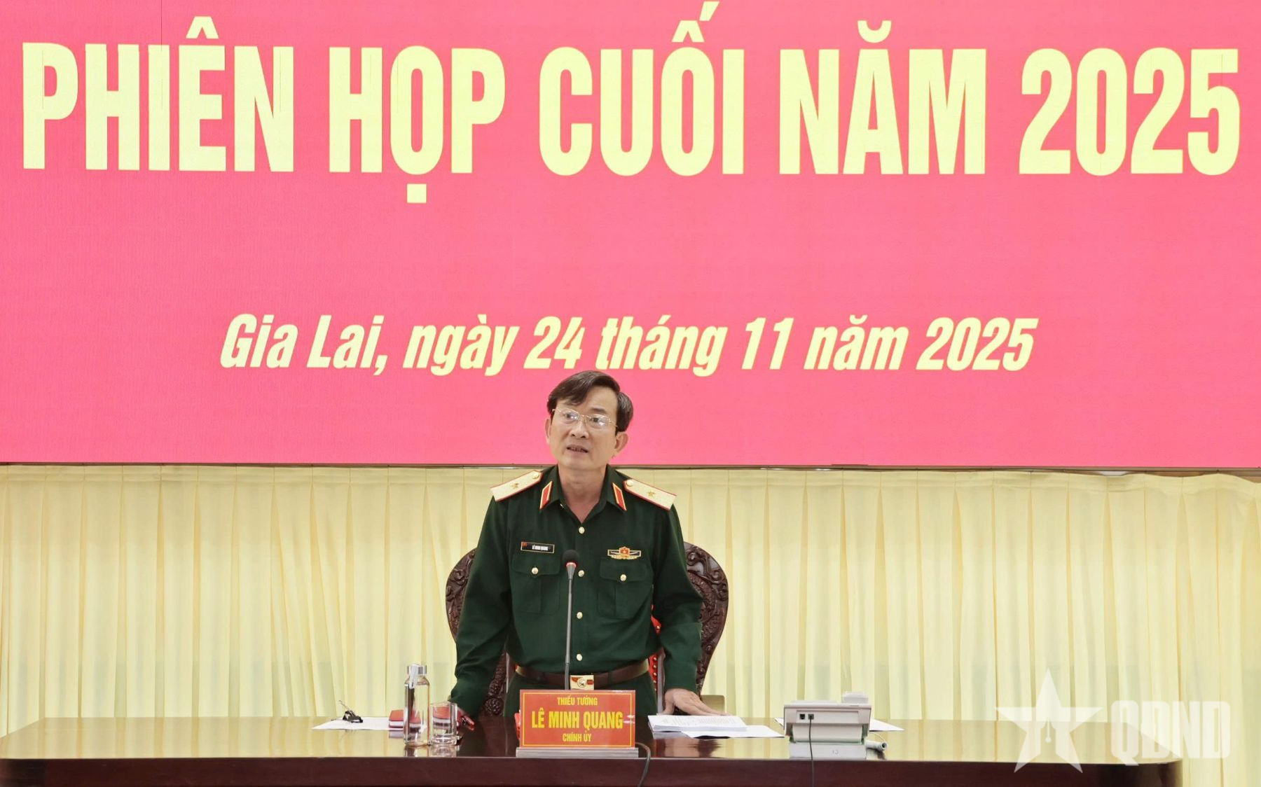 Thiếu tướng Lê Minh Quang, Bí thư Đảng ủy, Chính ủy Quân đoàn 34, Chủ tịch Hội đồng Thi đua-Khen thưởng Quân đoàn chủ trì hội nghị.