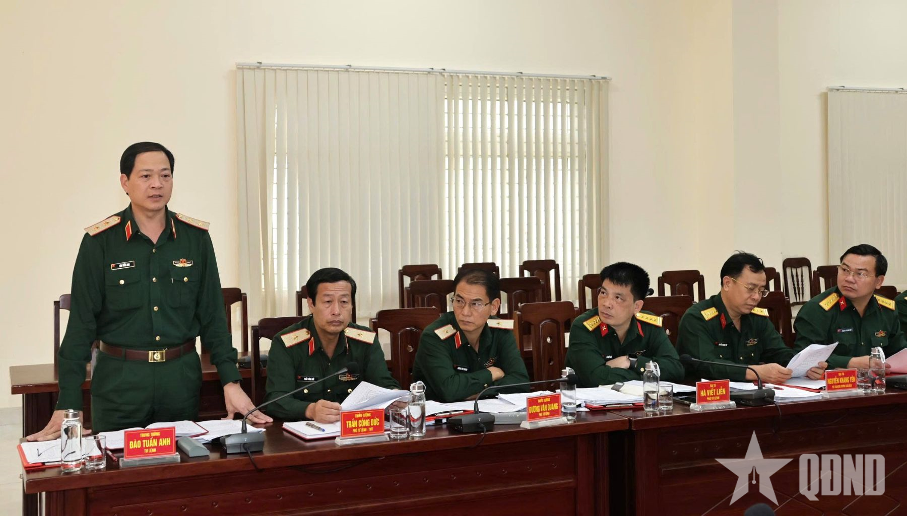 Trung tướng Đào Tuấn Anh, Tư lệnh Quân đoàn 34 phát biểu tại hội nghị.