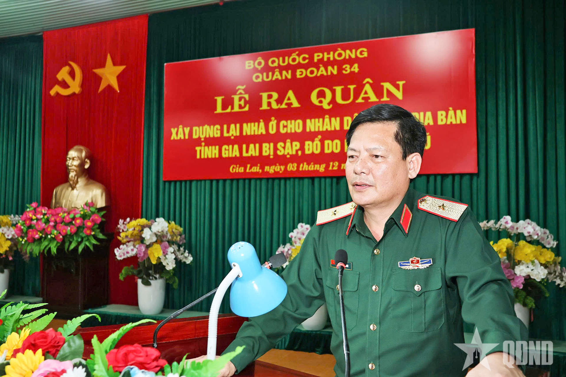 Phát biểu tại buổi lễ, Thiếu tướng Nguyễn Trần Long, Phó chính ủy Quân đoàn 34 biểu dương tinh thần chủ động, khẩn trương của cán bộ, chiến sĩ các đơn vị được giao nhiệm vụ.