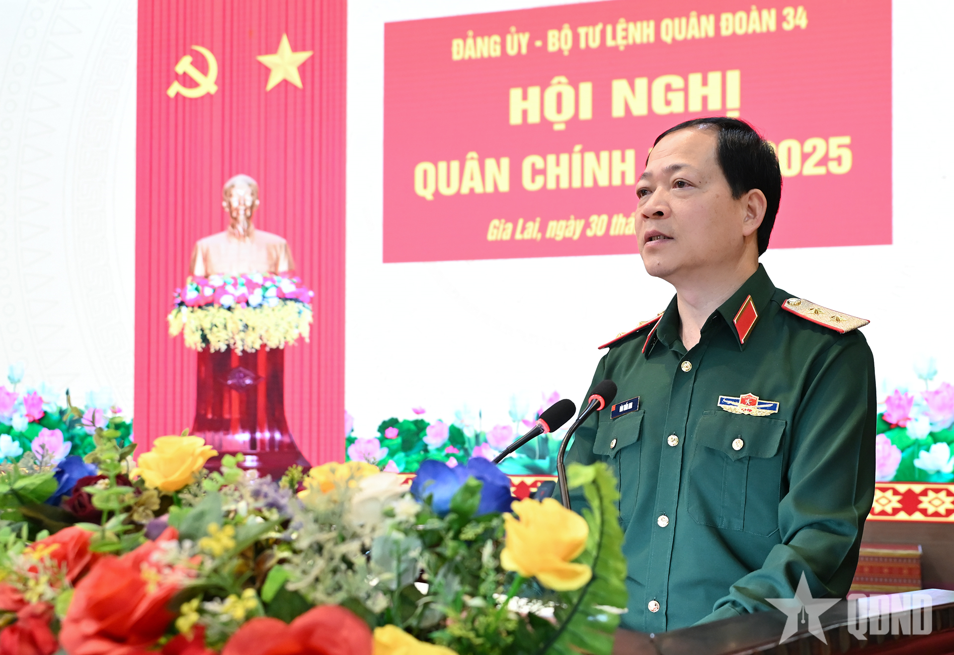 Phát biểu kết luận hội nghị, Trung tướng Đào Tuấn Anh, Tư lệnh Quân đoàn 34 ghi nhận, biểu dương và đánh giá cao kết quả lãnh đạo, triển khai thực hiện nhiệm vụ của các cơ quan, đơn vị trong Quân đoàn.