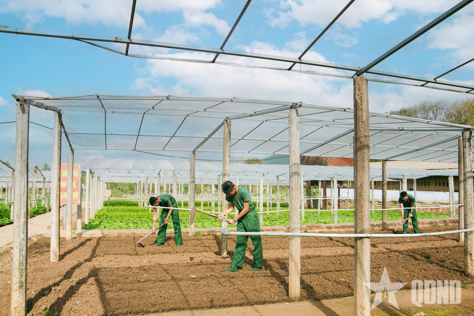 Chiến sĩ mới làm đất, lên luống, chuẩn bị vụ rau mới.