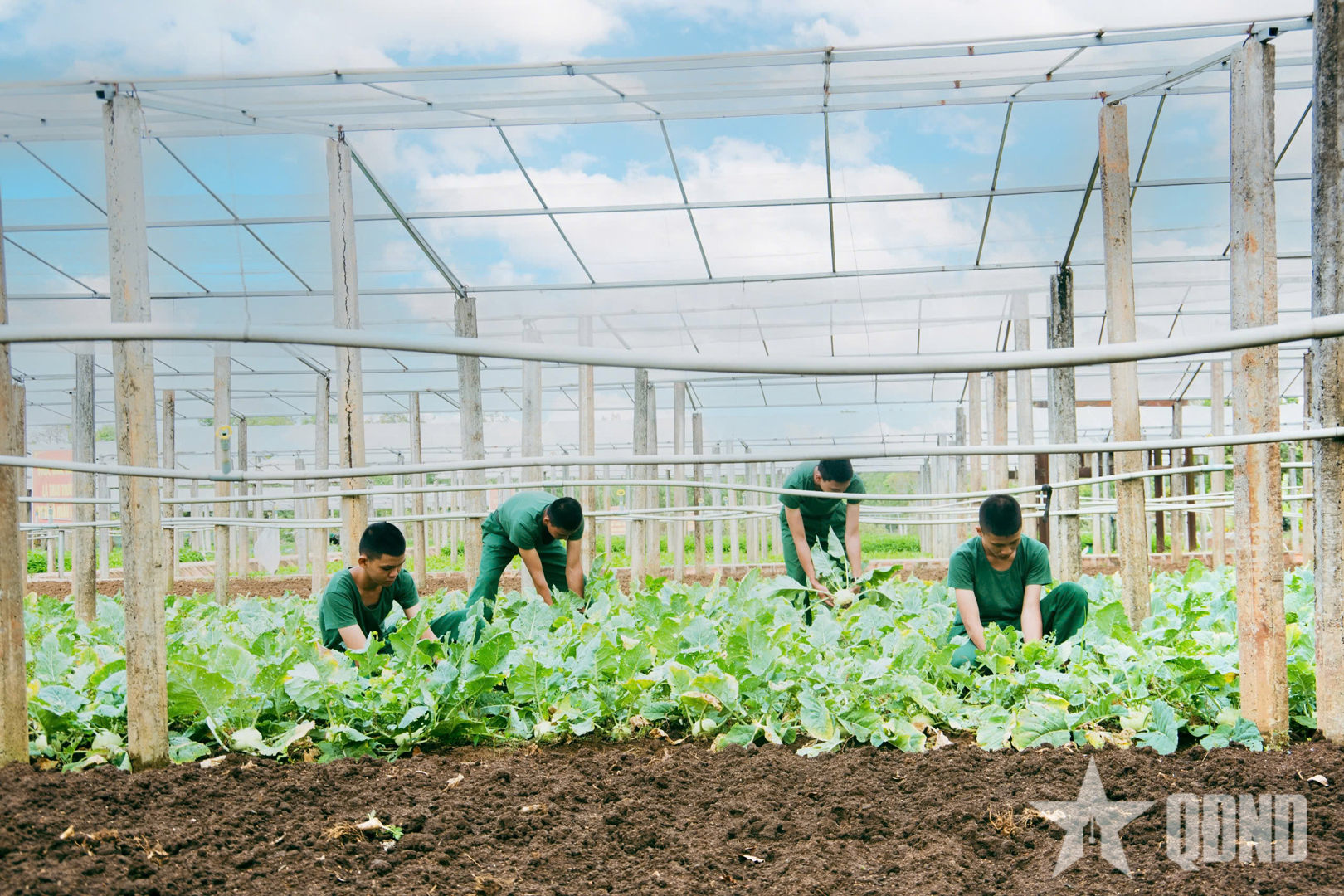 Những luống rau xanh mướt nhờ sự chăm sóc của chiến sĩ mới.