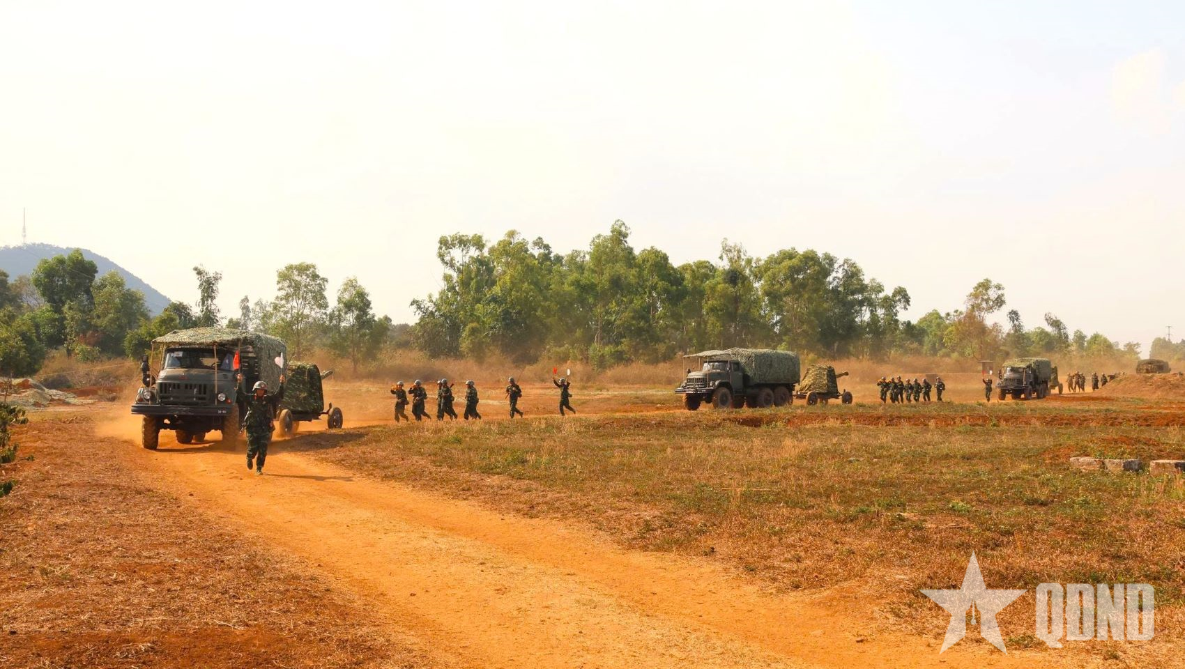 Cán bộ, chiến sĩ thực hành di chuyển trận địa phòng không.