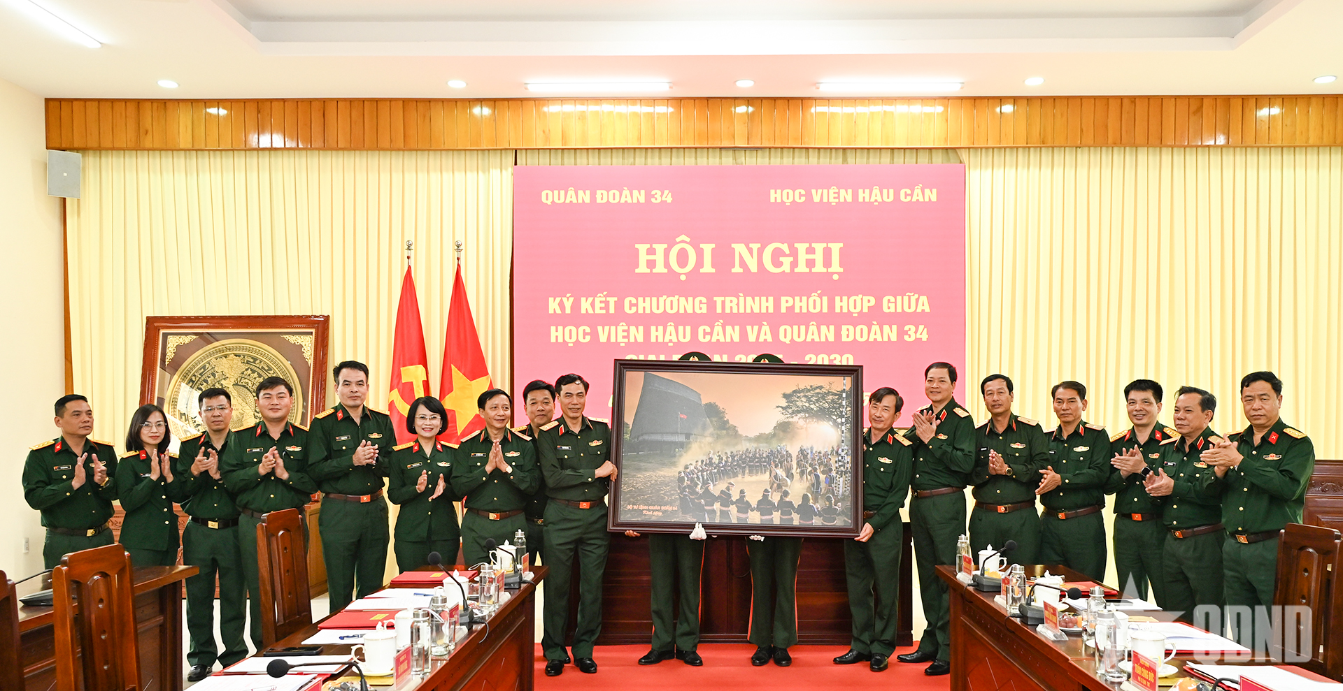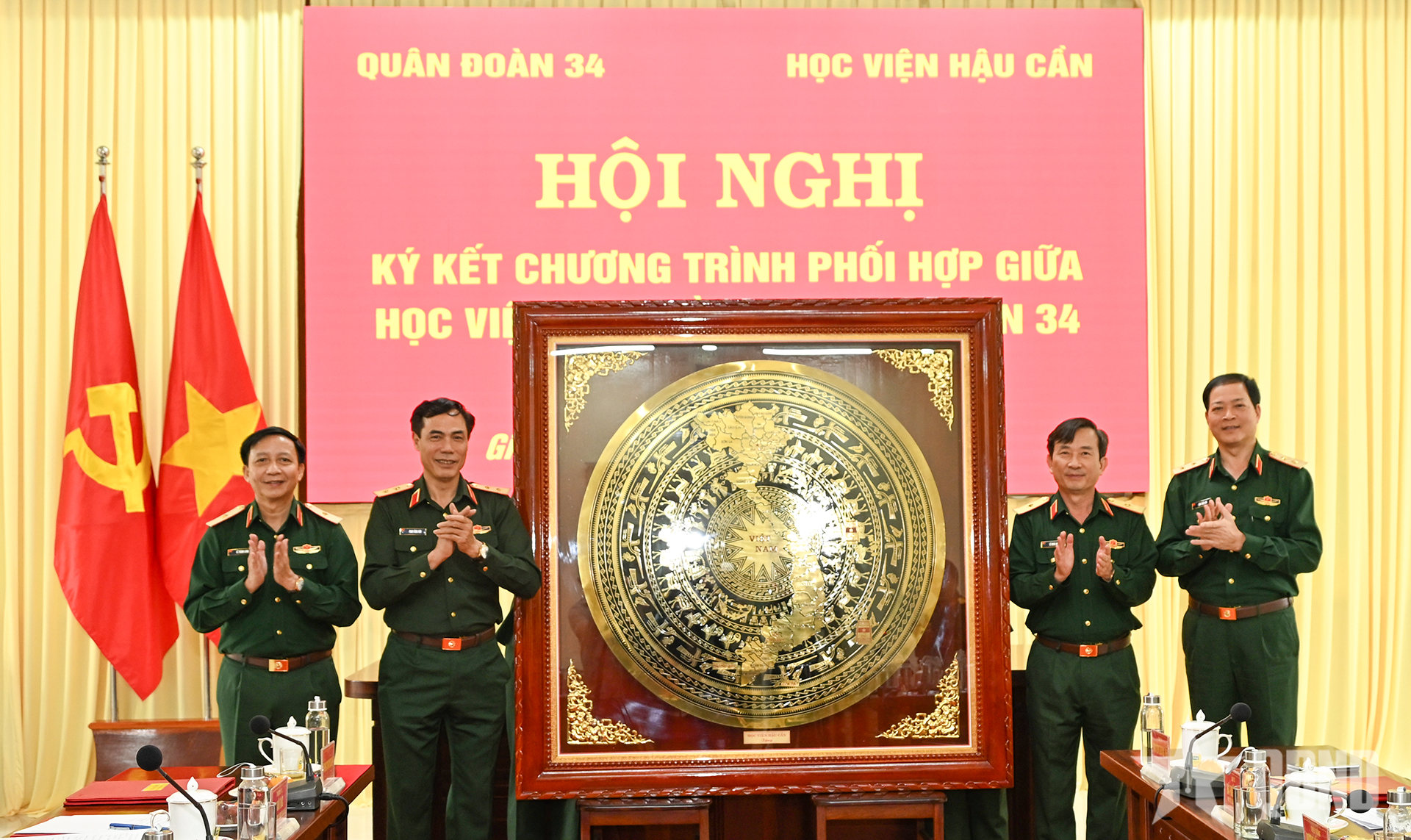 Học viện Hậu cần trao quà lưu niệm tặng Quân đoàn 34.