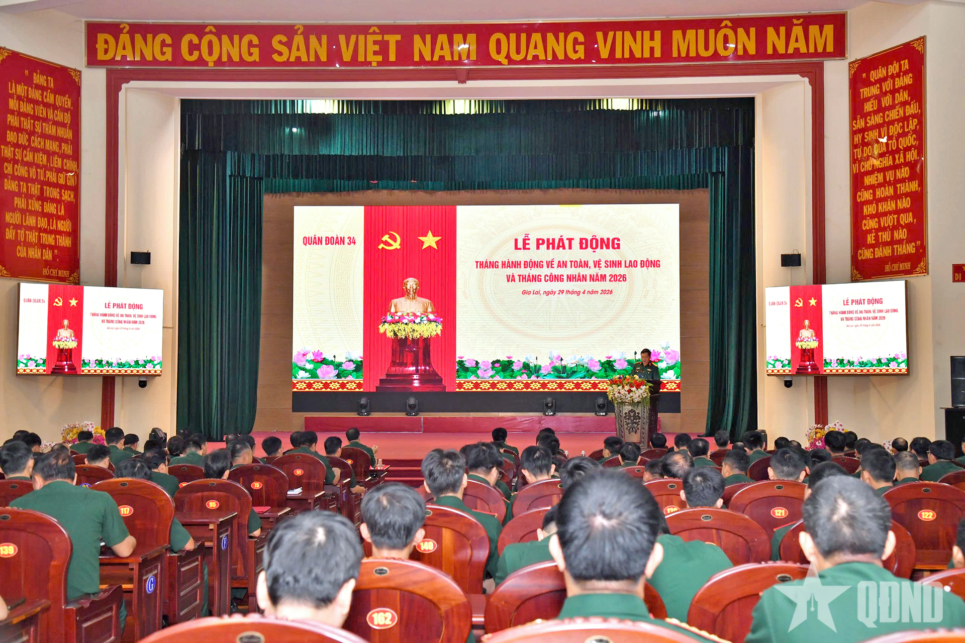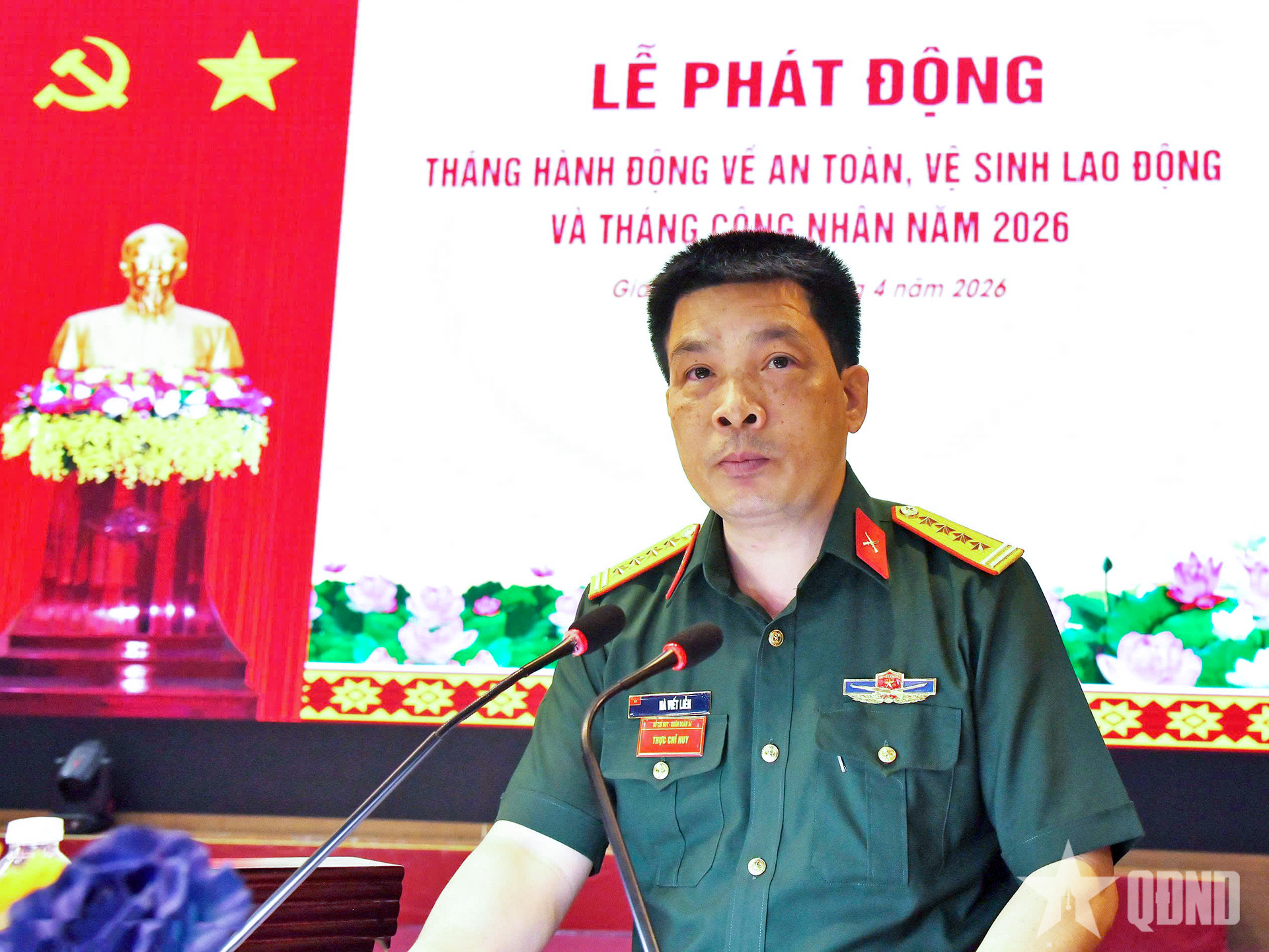 Phát biểu chỉ đạo, Đại tá Hà Viết Liễn, Phó tư lệnh Quân đoàn 34 nhấn mạnh, Tháng hành động về an toàn, vệ sinh lao động năm 2026 với chủ đề “Đổi mới quản lý và nâng cao hiệu quả công tác an toàn, vệ sinh lao động trong kỷ nguyên số” là đợt cao điểm nhằm tạo chuyển biến tích cực về nhận thức và trách nhiệm của mọi cấp, mọi cán bộ, chiến sĩ trong việc bảo đảm an toàn, vệ sinh lao động.