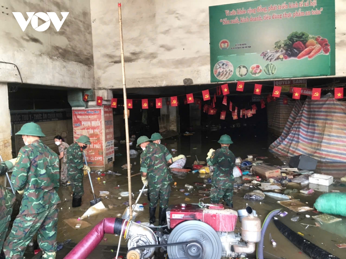 Trong ngày hôm nay, các lực lượng vũ trang tỉnh Thái Nguyên tiếp tục huy động lực lượng, giúp nhân dân dọn dẹp vệ sinh môi trường và vận chuyển lương thực, nhu yếu phẩm đến các khu vực bị ảnh hưởng của mưa lũ.