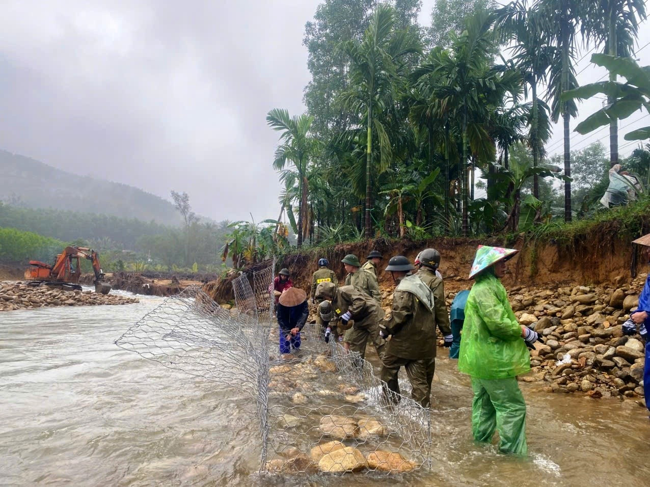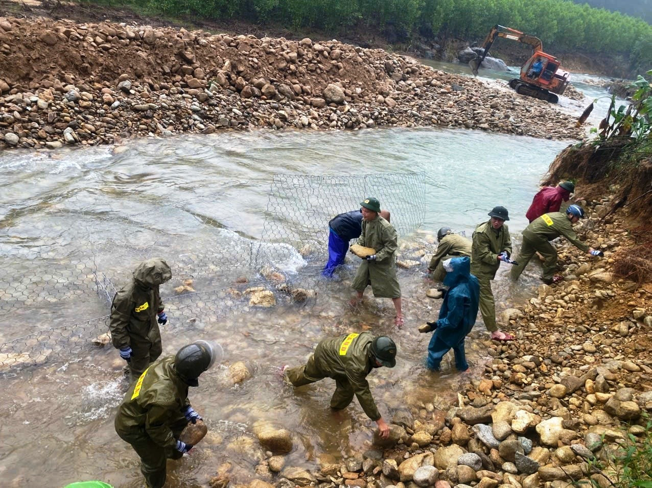 Bộ Chỉ huy Quân sự TP Huế đã huy động lực lượng thuộc Ban Chỉ huy Phòng thủ khu vực 3 - Phú Lộc cùng dân quân địa phương bám hiện trường tại thôn Xuân Mỹ và Xuân Lộc để khắc phục sạt lở bờ kè. Tại đây, những ngày vừa qua, gần 200 m bờ kè bị nước lũ khoét sâu, cuốn trôi, đe dọa vườn tược, nhà cửa của dân và nguy cơ làm sập tuyến đường liên thôn độc đạo trong khu vực.