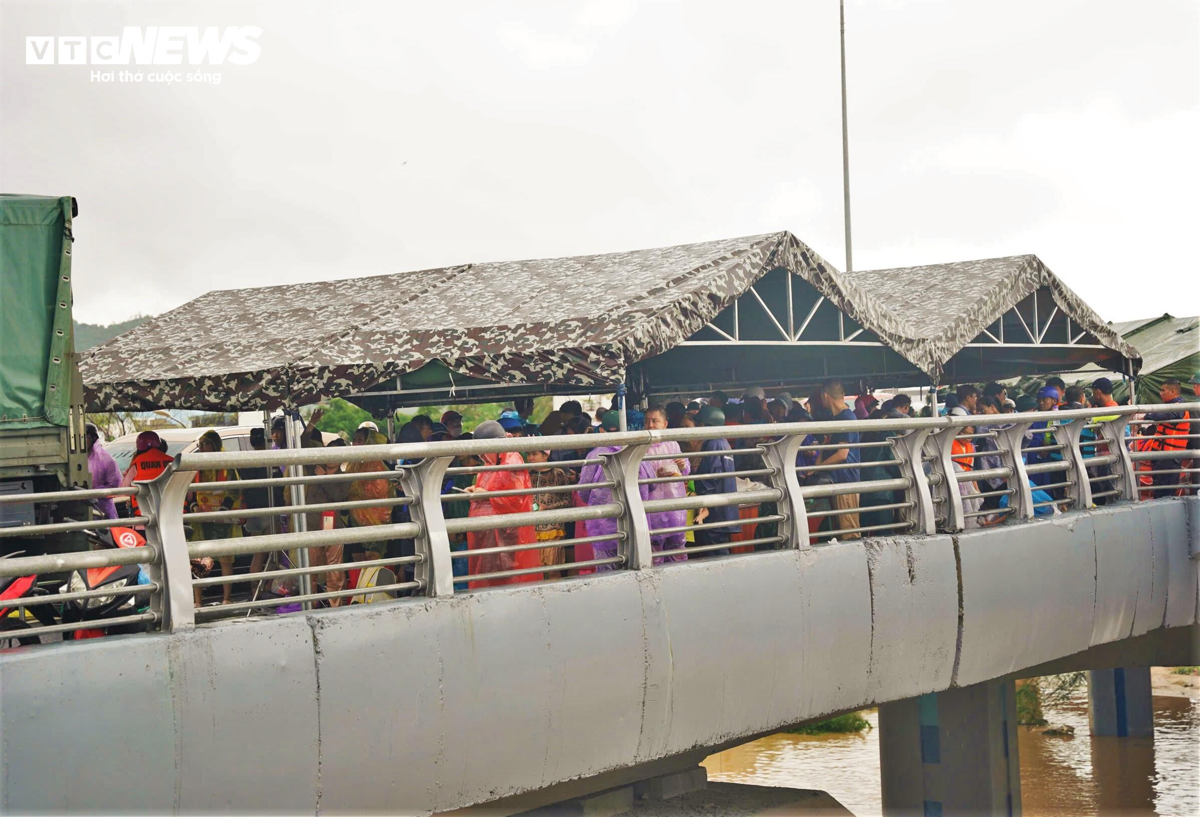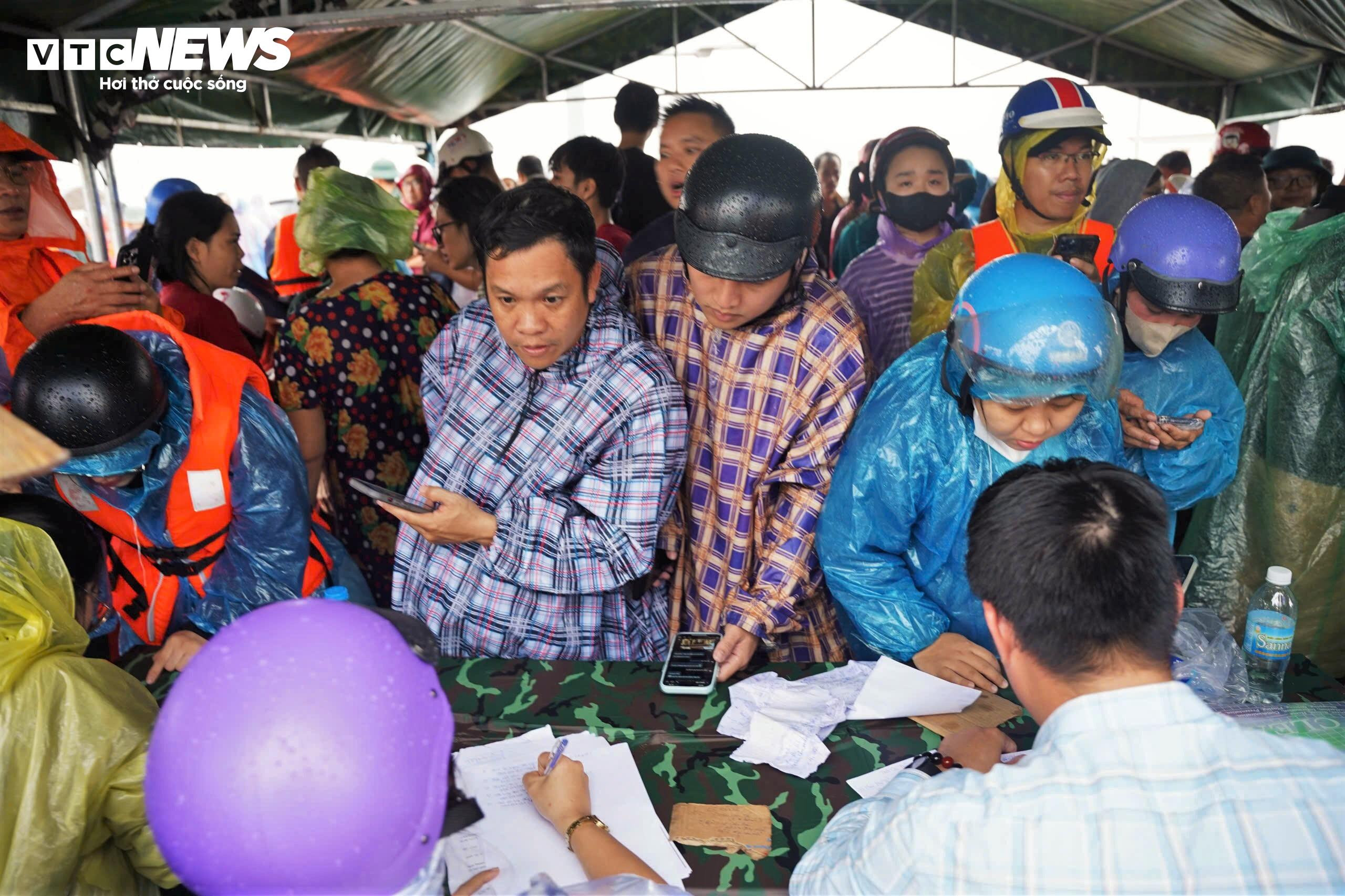Nhiều người xếp hàng khai báo trong lều về tình trạng người thân còn bị mắc kẹt trong mưa lũ để cơ quan chức năng lên phương án cứu trợ.