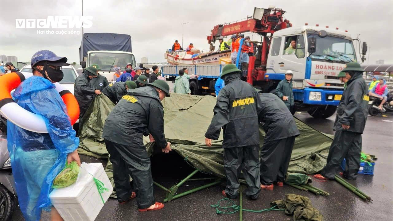 Chiều 20/11, hai căn lều dã chiến được lực lượng quân đội Khánh Hòa dựng tạm để người dân Nha Trang tránh trú, đồng thời làm nơi tập kết lương thực và phương tiện cứu hộ những ngày mưa lũ.