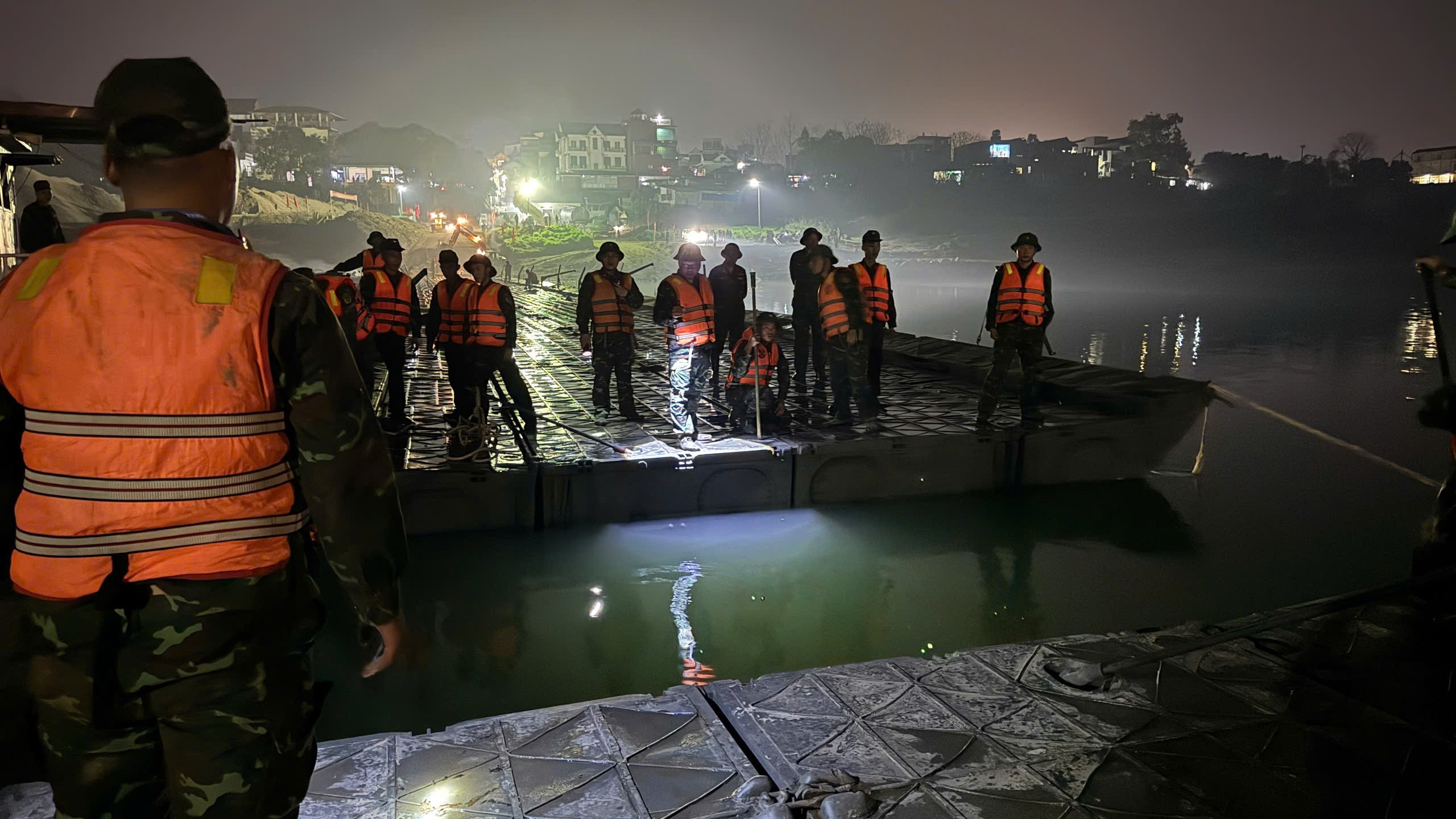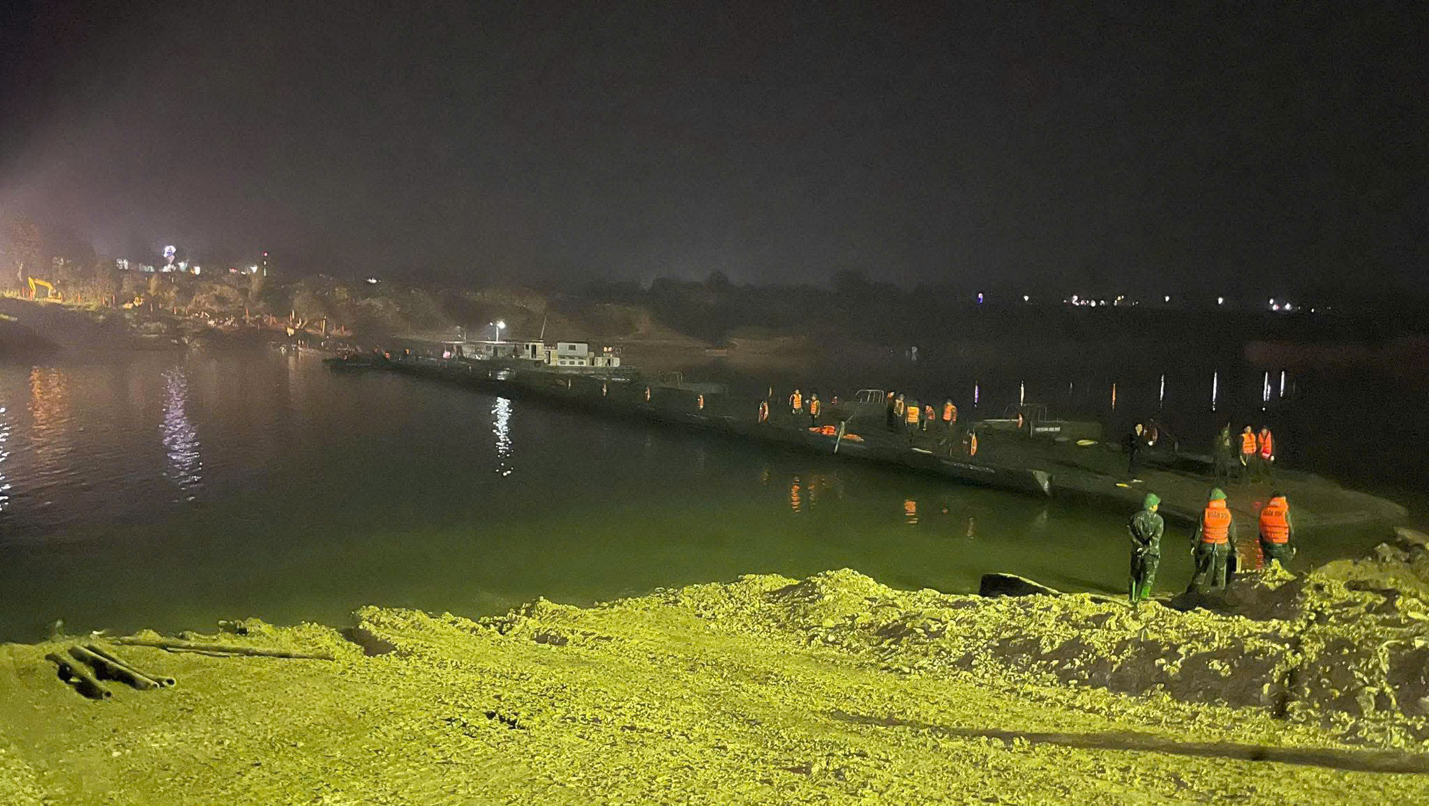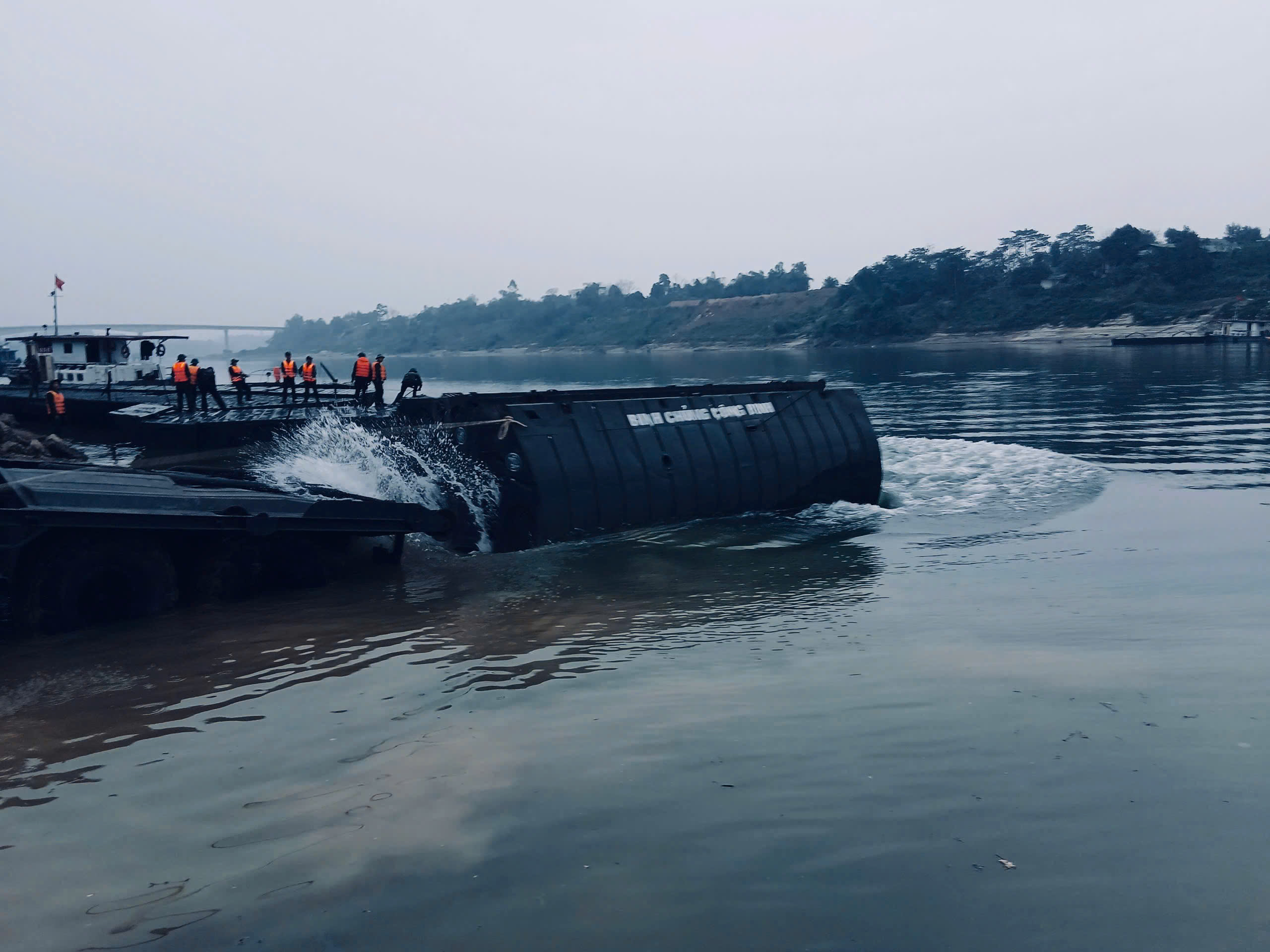 Trước đó, quá trình lắp đặt cầu phao được Lữ đoàn 249, Binh chủng Công binh thực hiện từ chiều cùng ngày