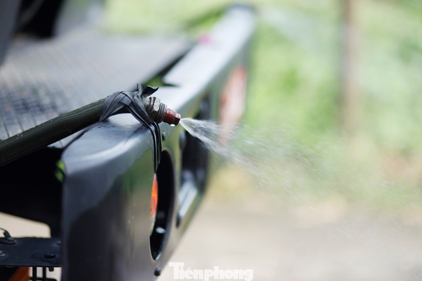 Ngay sau khi nước lũ rút, Quân khu 1 huy động xe đặc chủng để phun khử khuẩn ở xã Tiên Lục