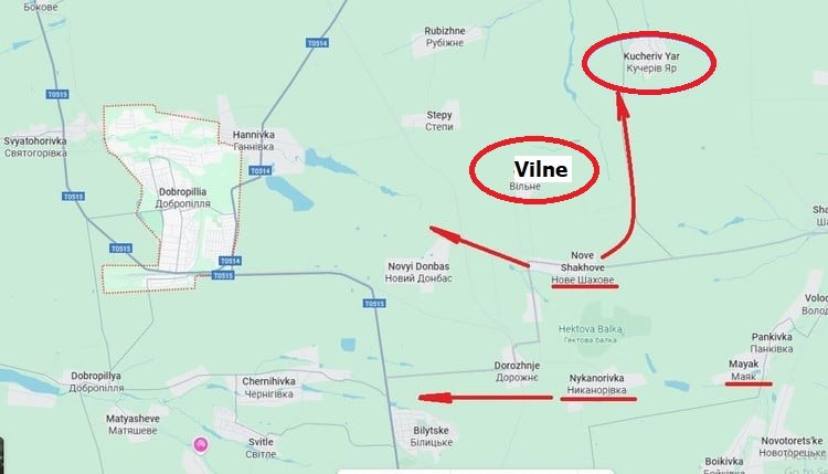 Quân Nga cũng đã bắt đầu xâm nhập vào làng Vilne từ phía đông bắc với lực lượng bộ binh mới được tập hợp. Giao tranh vẫn đang diễn ra tại các khu vực rừng cây ngay bên ngoài ngôi làng. RFAF cũng đang tiến hành các cuộc đột kích vào Ivanivka, nhằm giành lại quyền kiểm soát ngôi làng và san phẳng mặt trận phía tây nam Nove Skakhove.