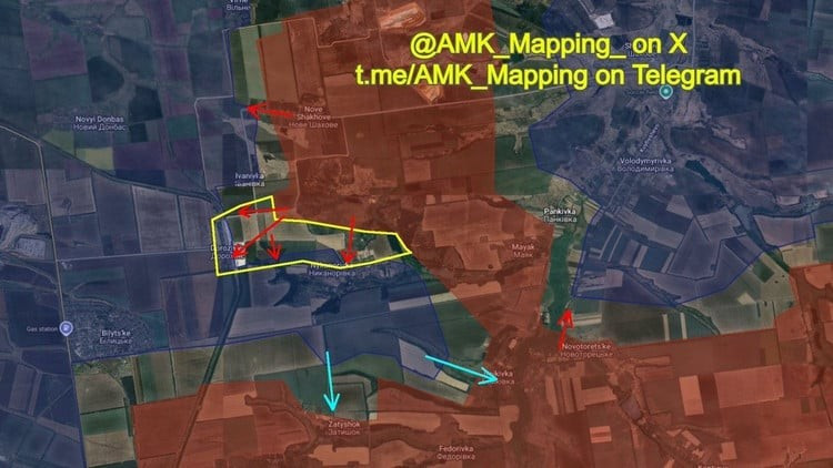 Các mũi đột kích bổ sung đang được RFAF thực hiện ở phía tây bắc Zatyshok, nơi họ đang cố gắng củng cố các đồn điền trồng rừng về phía đường sắt để củng cố sự hiện diện trên tuyến Zatyshok - Sukhetske. Trong khi quân Ukraine tiếp tục các nỗ lực tiến về phía hàng cây phía nam Nykanorivka; kênh Readovka cho biết.