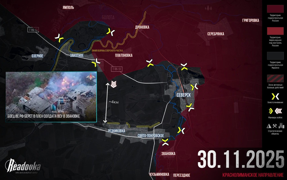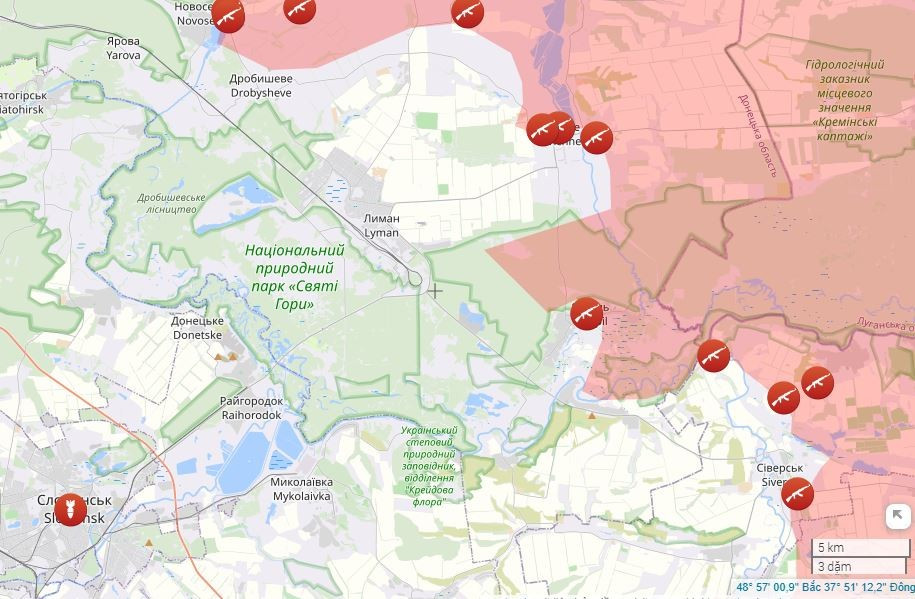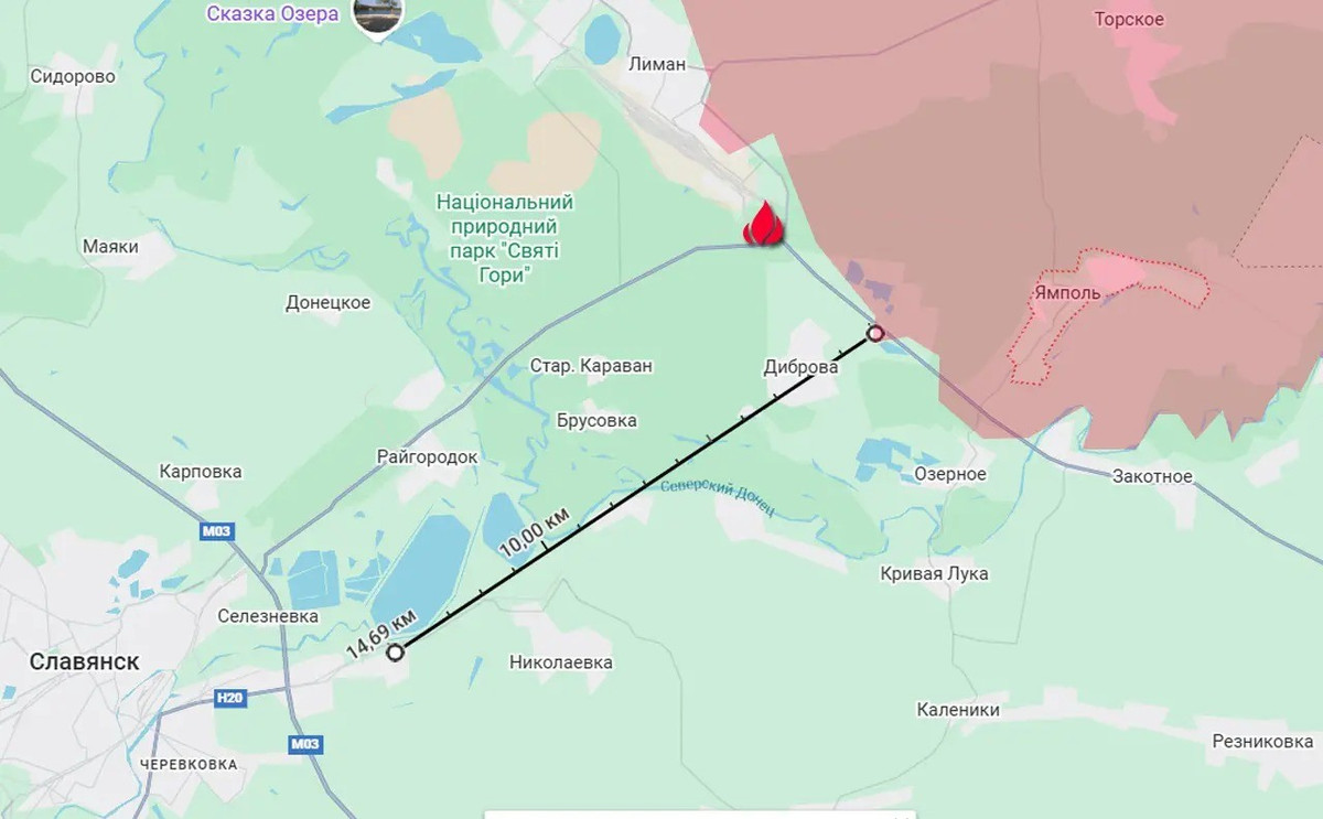 Quân đội Nga (RFAF), sau khi vượt qua tuyến phòng thủ kiên cố của Quân đội Ukraine (AFU) trên hướng Lyman (Nga gọi là Krasny Liman), đã giành được một đoạn mới của trục đường quốc lộ Lyman-Seversk. Đoạn đường này nằm ở phía tây nam của làng Yampol, nơi trước đó đã được RFAF kiểm soát, theo hướng làng Dibrova.