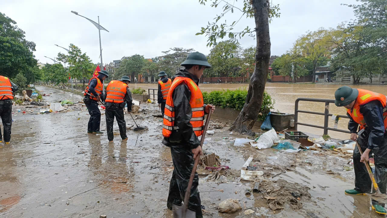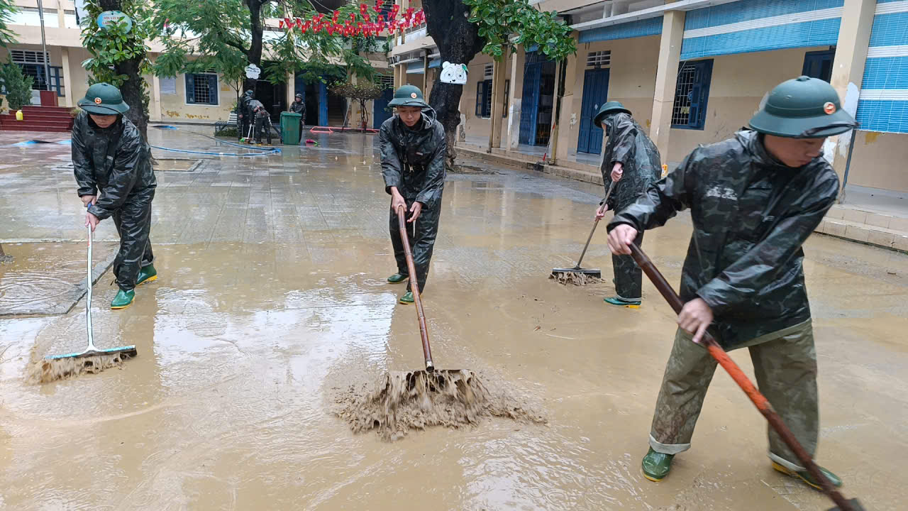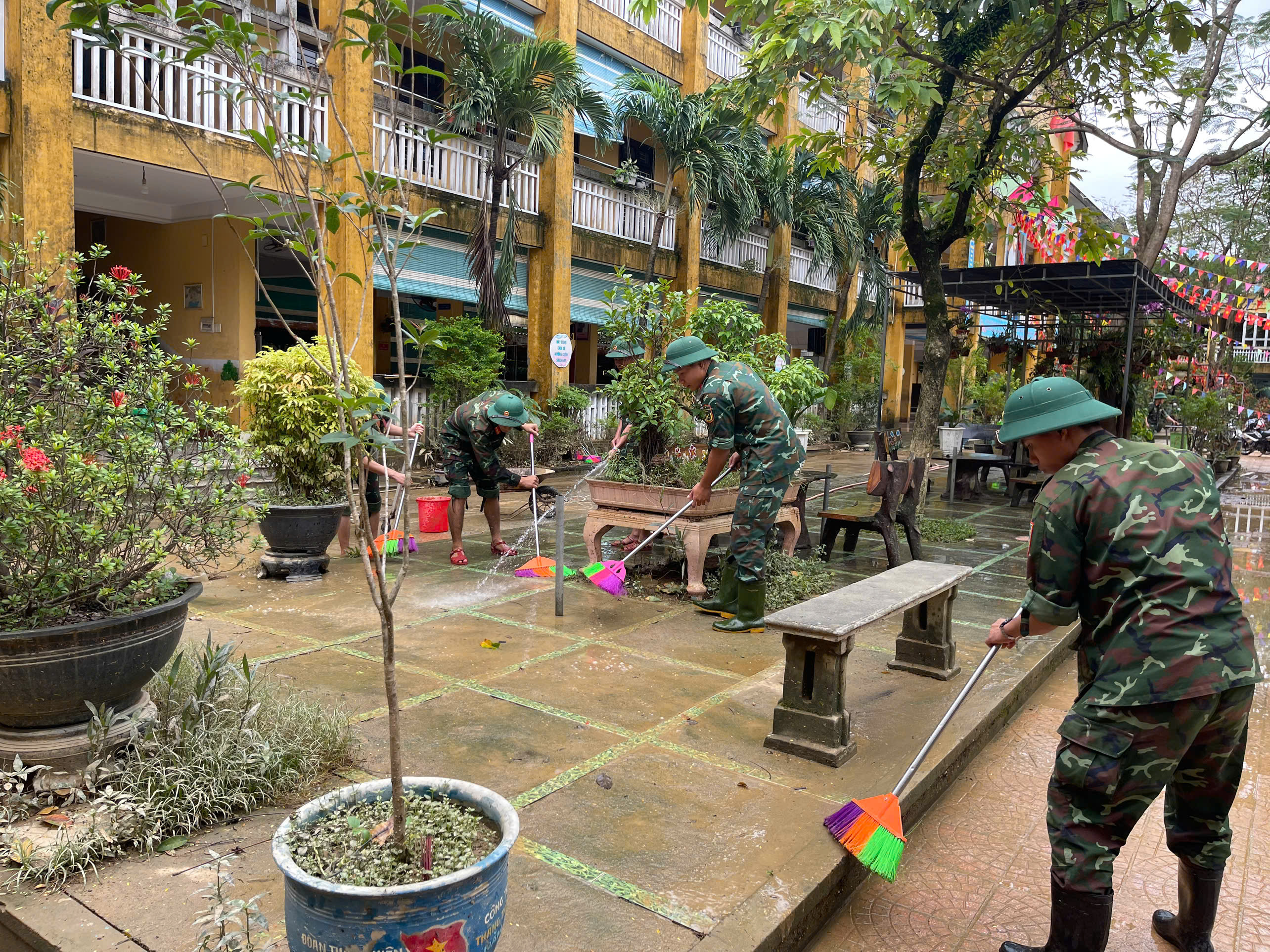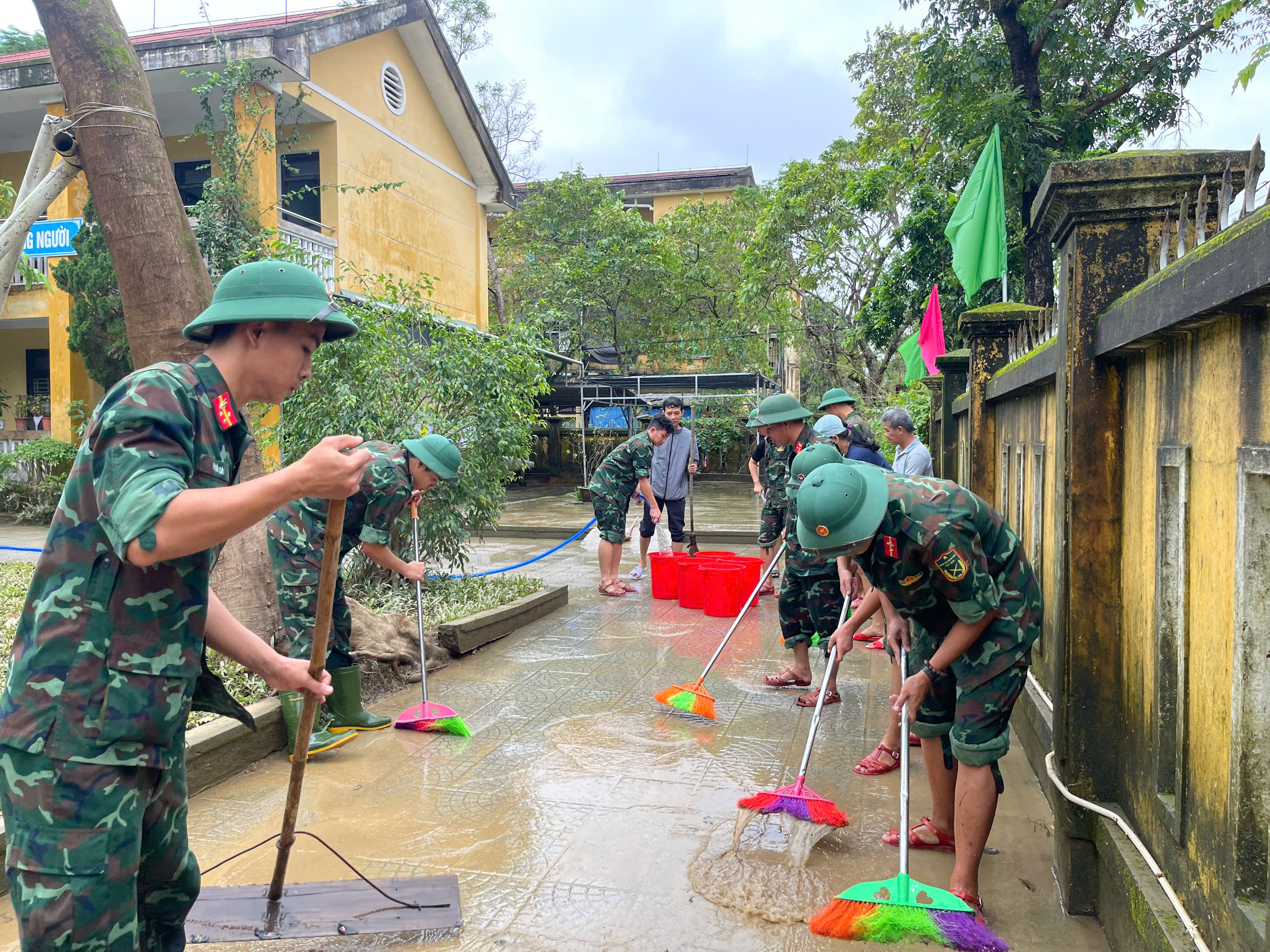 Ngày 5-11, Quân khu 4 tiếp tục huy động hơn 7.000 cán bộ, chiến sĩ, dân quân các đơn vị thuộc Bộ Chỉ huy quân sự (CHQS) TP Huế và Sư đoàn 968 cùng nhiều phương tiện, chia thành nhiều mũi cơ động đến các phường, xã, trường học, cơ sở y tế, chợ dân sinh… hỗ trợ người dân dọn dẹp, vệ sinh môi trường, thu gom rác thải, khử khuẩn và tu sửa cơ sở vật chất.