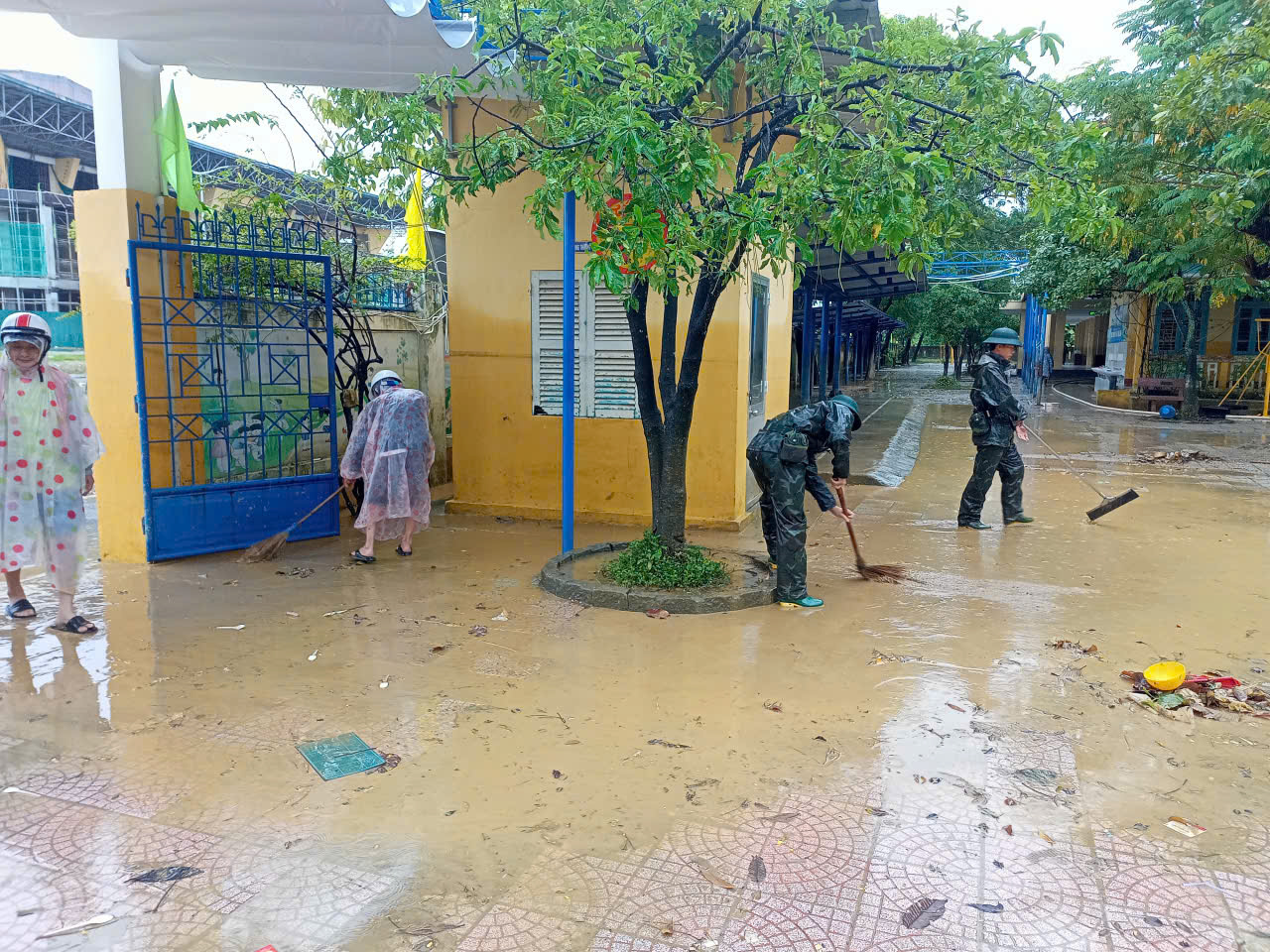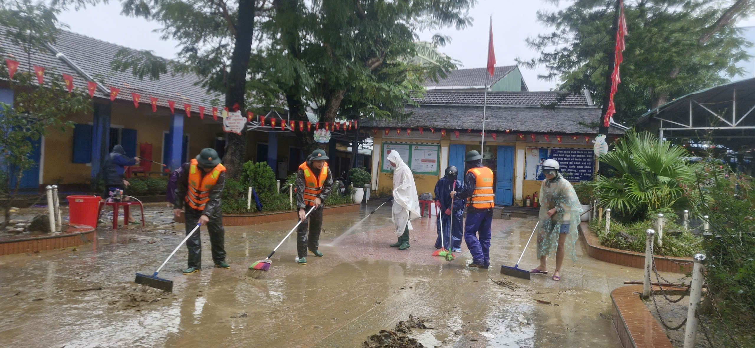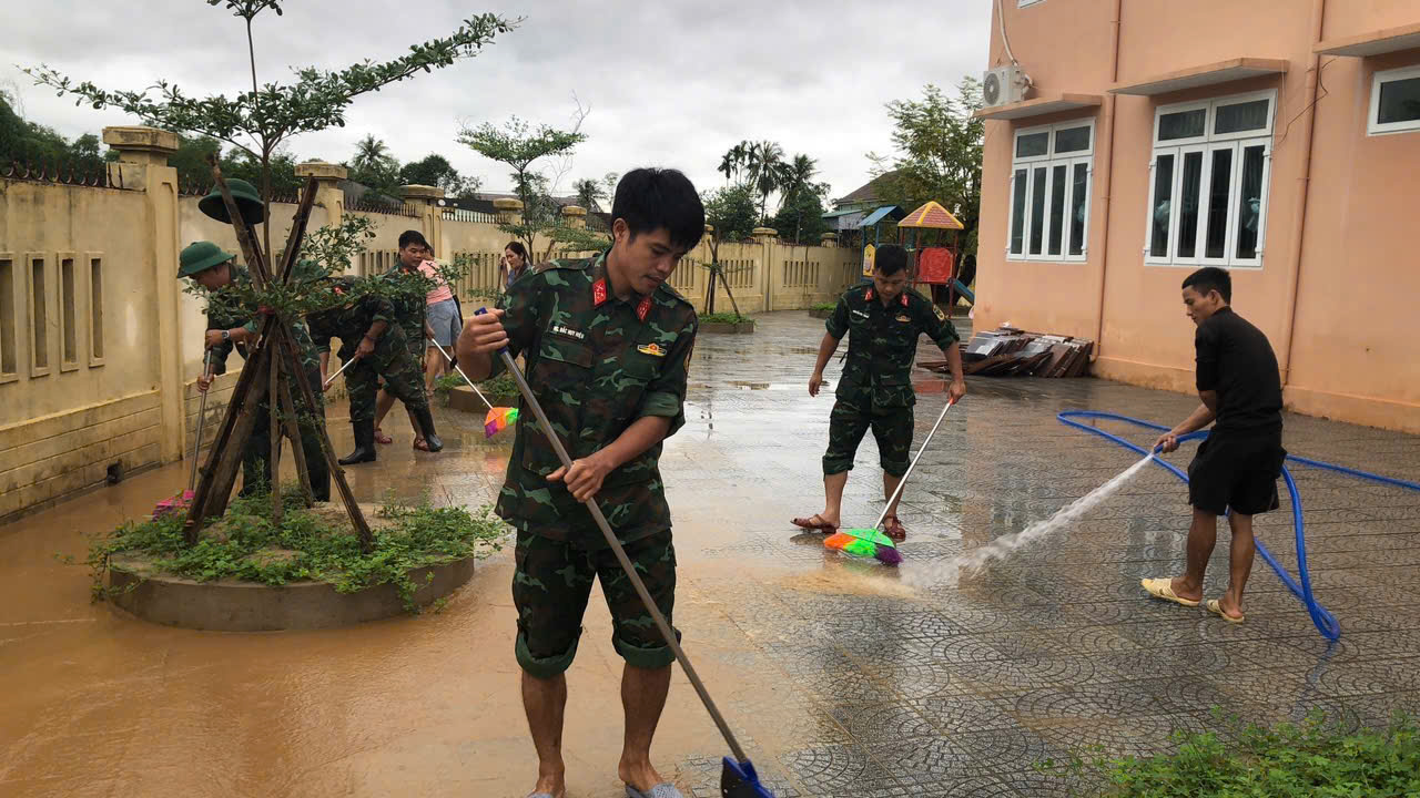 Cùng ngày, Sư đoàn 968 phối hợp với lực lượng tại chỗ dọn vệ sinh Trường Tiểu học số 1 Hương Vinh và tham gia vận chuyển hàng cứu trợ tại phường Hóa Châu, TP Huế.