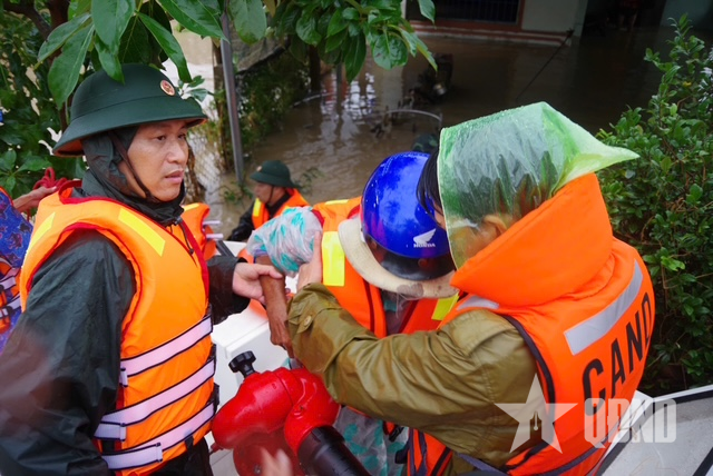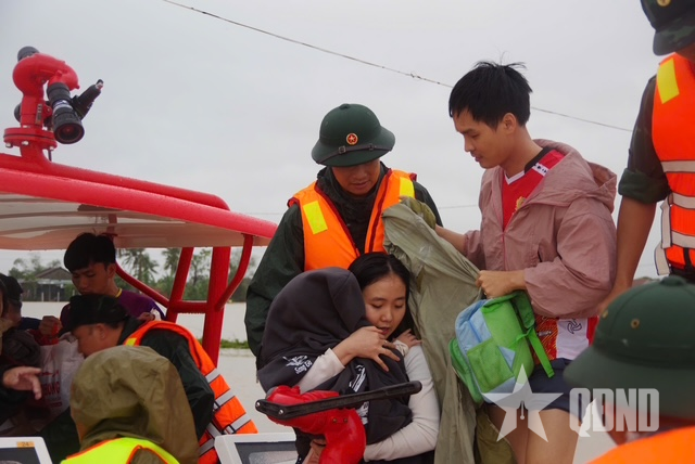 Lực lượng Quân đội cơ động cứu trợ bà con vùng lũ xã Hòa Xuân, tỉnh Đắk Lắk.
