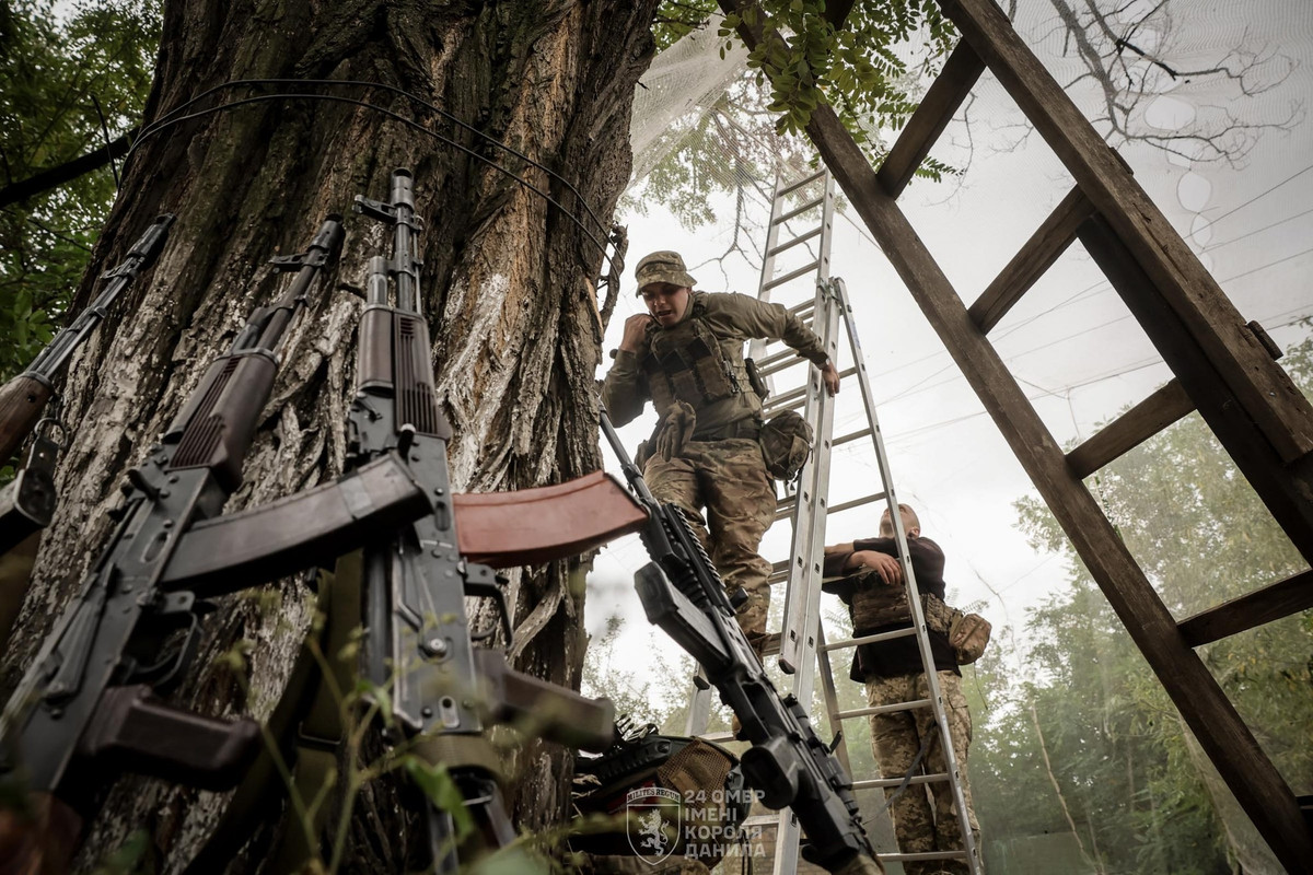 Lữ đoàn Cơ giới số 24 của Ukraine nhấn mạnh rằng, công việc giăng lưới này diễn ra dưới sự đe dọa liên tục của các cuộc không kích, hỏa lực pháo binh và các cuộc tấn công bằng máy bay không người lái. Ảnh: @Lữ đoàn Cơ giới số 24 của Ukraine.
