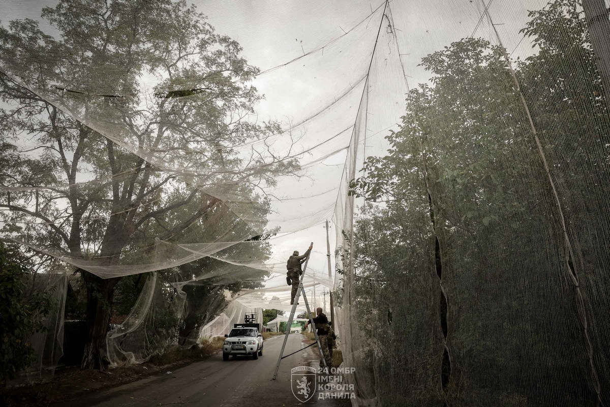 “Những tấm lưới này đang cứu mạng người”, Lữ đoàn Cơ giới số 24 của Ukraine lưu ý. Ảnh: @Lữ đoàn Cơ giới số 24 của Ukraine.