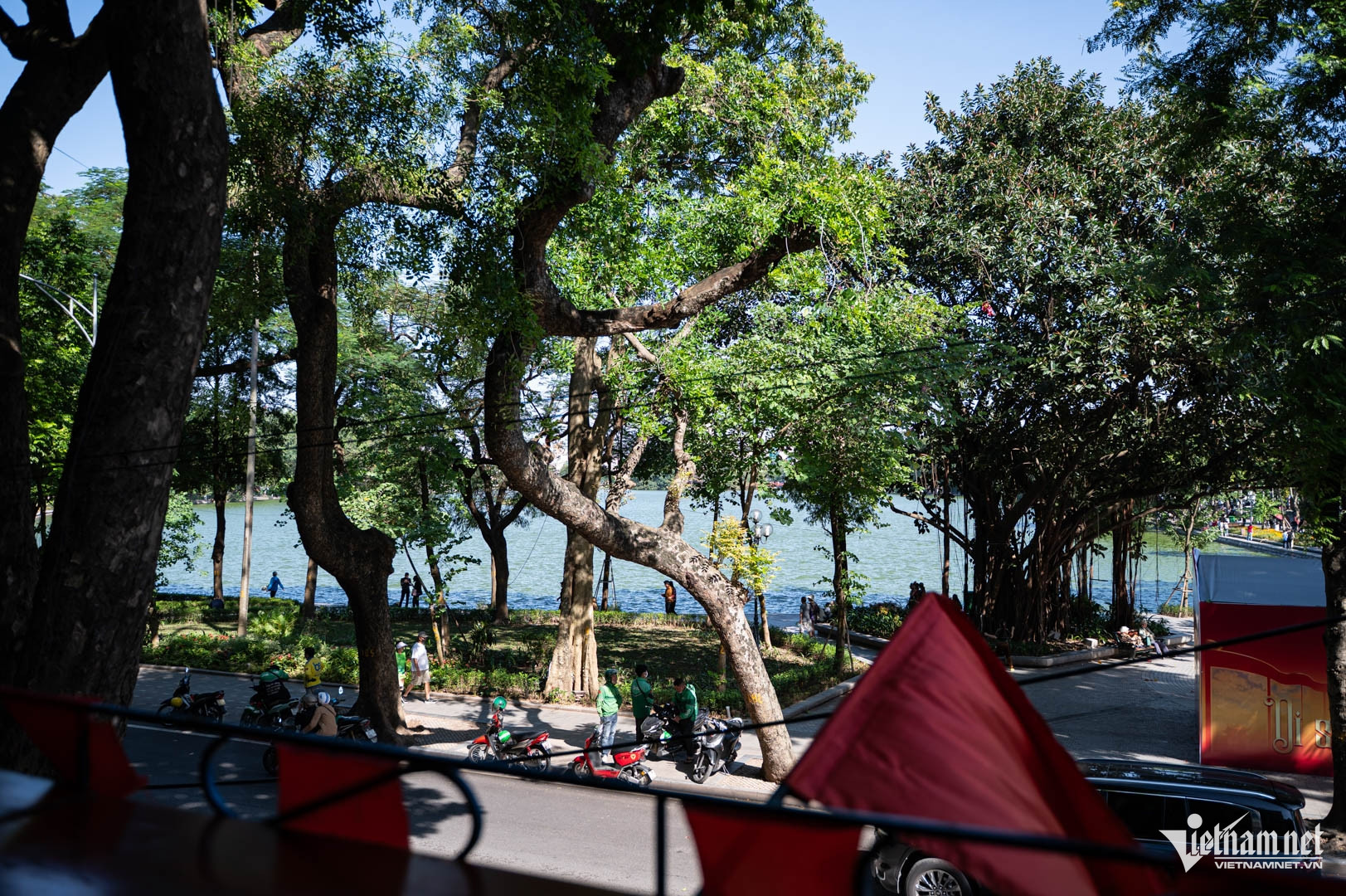 Họ hỏi thăm chủ quán rồi đi thẳng qua hai gian phòng để tới chiếc ban công ngập nắng, gió thổi mát lạnh. Đây là không gian mà bất cứ vị khách nào tới quán đều ưa thích. Bởi từ ban công có thể phóng tầm mắt nhìn ra Hồ Gươm, ngã tư giao phố Hàng Khay và Đinh Tiên Hoàng tấp nập.
