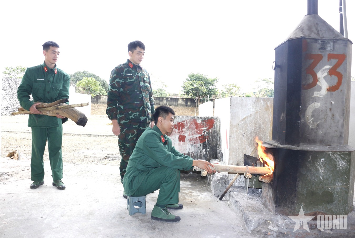 Bảo đảm nước nóng cho bộ đội tắm tại Tiểu đoàn Đặc công 20, Bộ Tham mưu Quân khu 1.