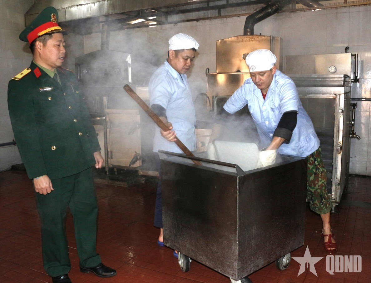 Kiểm tra công tác chuẩn bị bữa ăn của bộ đội trong những ngày rét đậm tại Tiểu đoàn 15, Bộ Tham mưu, Quân khu 1.
