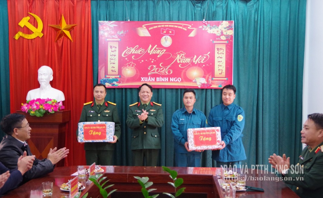 Thủ trưởng Bộ CHQS tỉnh tặng quà tết cho Ban CHQS và Tiểu đội dân quân thường trực xã Kháng Chiến, tỉnh Lạng Sơn