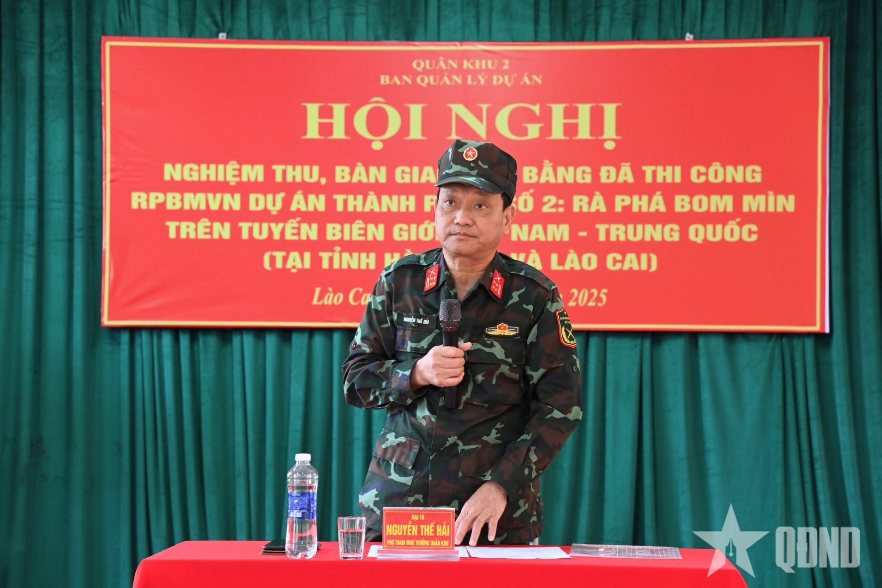 Phát biểu tại hội nghị, Đại tá Nguyễn Thế Hải, Phó tham mưu trưởng Quân khu 2 biểu dương tinh thần, trách nhiệm của cán bộ, chiến sĩ các đơn vị trong thời gian qua; cảm ơn cấp ủy, chính quyền các địa phương đã quan tâm, phối hợp chặt chẽ, tạo điều kiện thuận lợi để các lực lượng tiến hành rà phá bảo đảm tiến độ, chất lượng. Đồng chí yêu cầu, sau hội nghị bàn giao, Phòng Công binh hướng dẫn các đơn vị hoàn thiện thủ tục hồ sơ theo đúng quy định; Bộ CHQS tỉnh Lào Cai cập nhật bản đồ theo dõi ô nhiễm bom mìn, vật nổ trên địa bàn bảo đảm chặt chẽ; các đơn vị thi công rà soát, kiểm tra toàn bộ trang bị, phương tiện, vật chất, xây dựng kế hoạch và tổ chức hành quân về đơn vị bảo đảm an toàn…