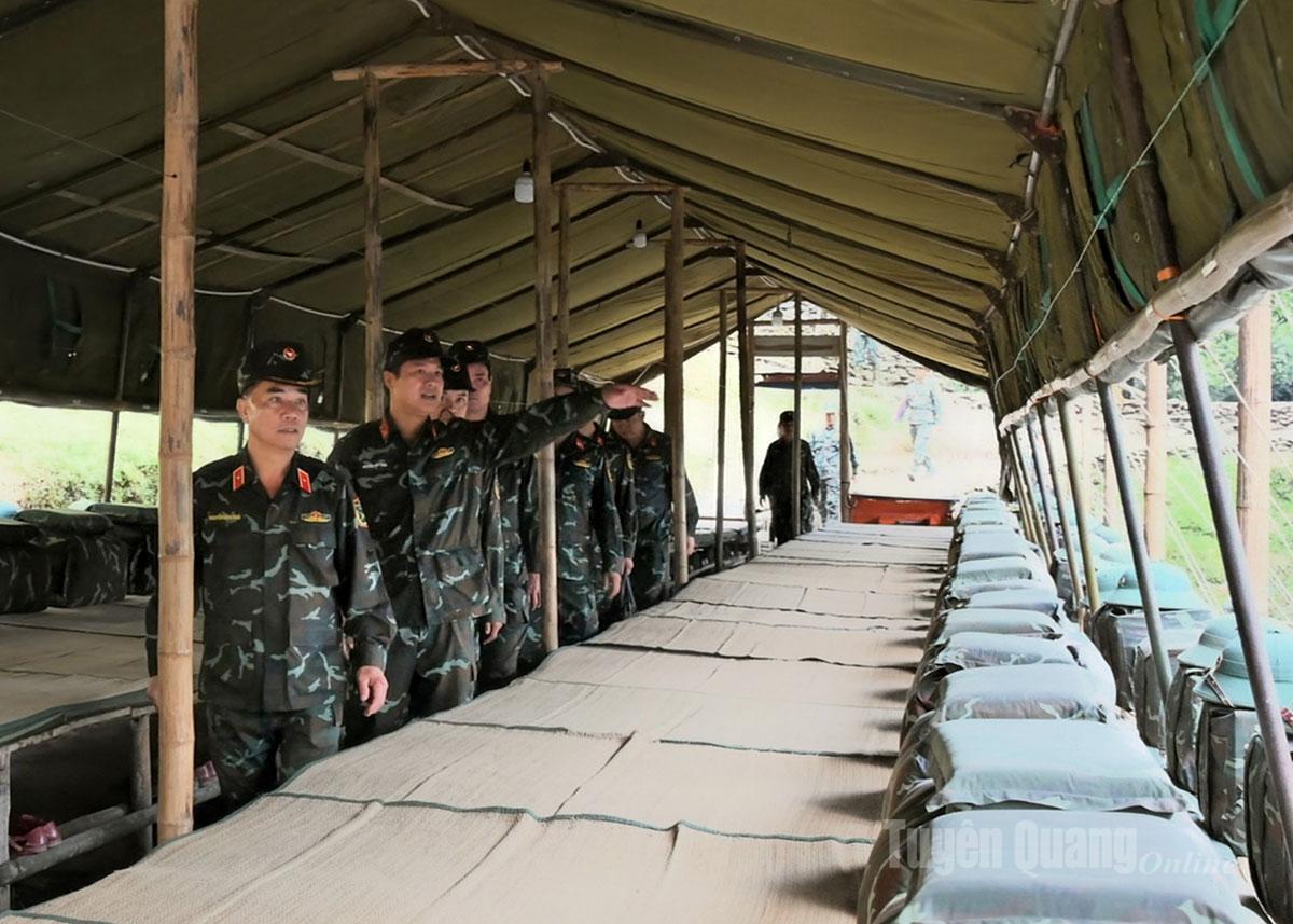 Đoàn công tác kiểm tra nơi ăn, ở dã ngoại Đội rà phá bom mìn, vật nổ Sư đoàn 316.