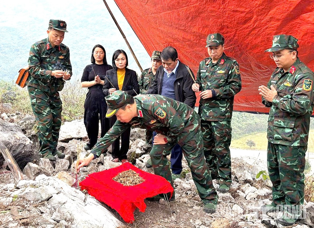 Thiếu tướng Nguyễn Ngọc Ngân, Phó chủ nhiệm Chính trị, Phó trưởng Ban Chỉ đạo 515 Quân khu 2, thắp hương tri ân các liệt sĩ tại điểm cao 211, thôn Giang Nam, xã Thanh Thủy (Tuyên Quang).