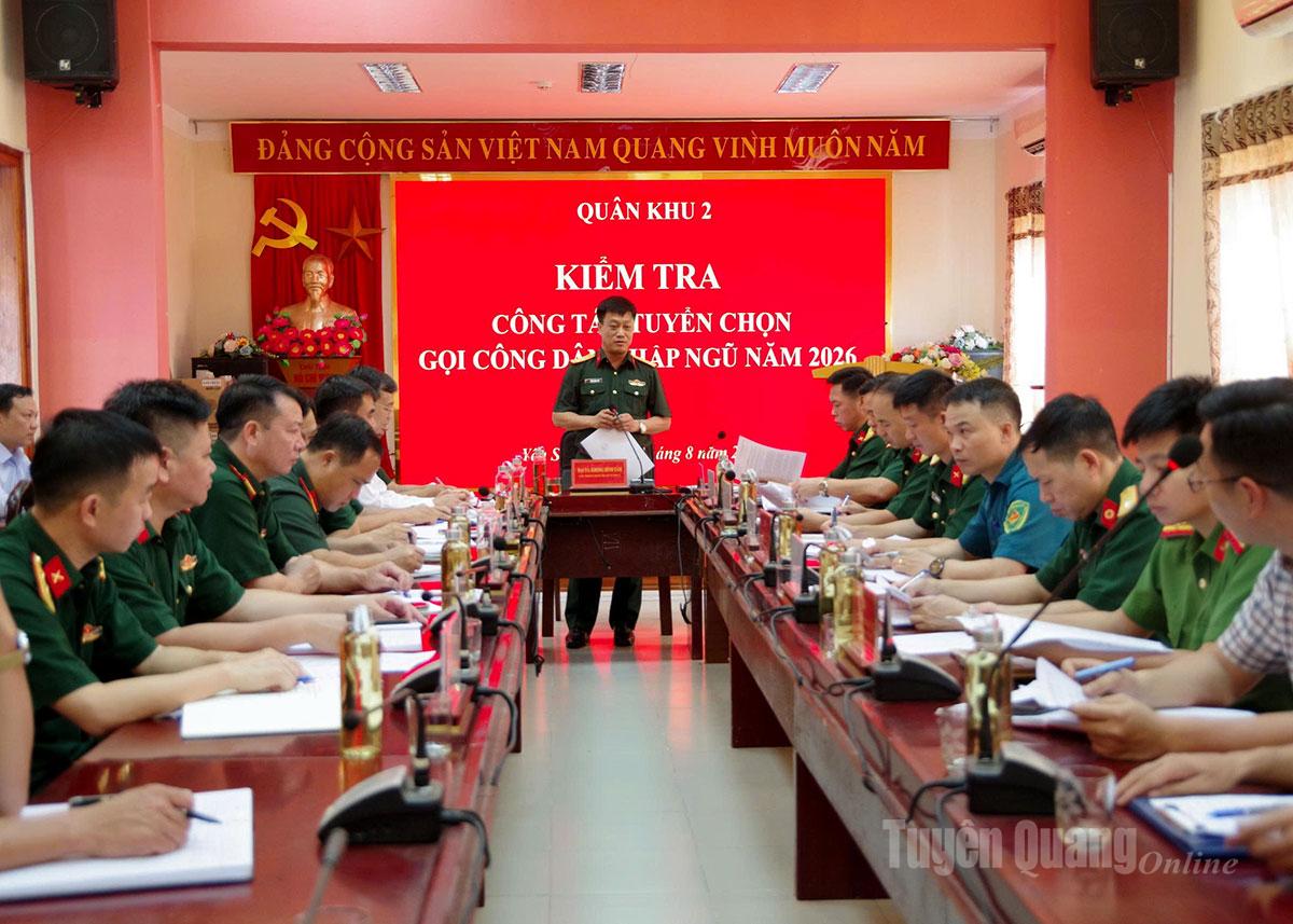 Kết luận kiểm tra, Đại tá Khổng Đình Tám, Chủ nhiệm Chính trị Quân khu 2 biểu dương sự tích cực của cơ quan quân sự các cấp đã chủ động tham mưu cấp ủy, chính quyền địa phương trong công tác tuyển chọn và gọi công dân nhập ngũ năm 2026. Đồng thời, phát huy sức mạnh tổng hợp của cả hệ thống chính trị cùng tham gia công tác tuyển quân; chỉ đạo, hướng dẫn và triển khai thực hiện đồng bộ từ tỉnh đến xã, phường. Các bước tuyển quân được thực hiện bảo đảm chặt chẽ, công bằng, dân chủ, công khai; 100% các tổ công tác đã xuống xã, phường để hướng dẫn, giúp đỡ công tác tuyển quân từ khi sơ tuyển sức khỏe đến khi tổ chức lễ giao nhận quân.