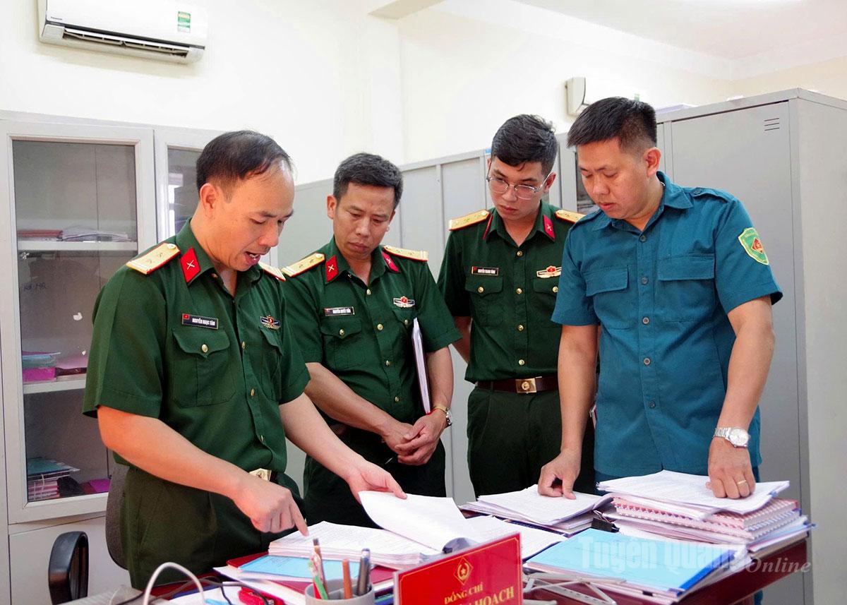 Đoàn công tác đã kiểm tra trực tiếp tại xã Yên Sơn và phường Minh Xuân. Nội dung kiểm tra tập trung vào công tác tham mưu cấp ủy, chính quyền trong việc lãnh đạo, chỉ đạo công tác tuyển quân; tuyên truyền, phổ biến và quán triệt, triển khai thực hiện Luật Nghĩa vụ quân sự và các văn bản, chỉ thị, hướng dẫn của Bộ Quốc phòng, Quân khu. Đồng thời, kiểm tra việc đăng ký, quản lý công dân trong độ tuổi nhập ngũ; di chuyển, tiếp nhận nghĩa vụ quân sự đối với nam công dân đi học, hoàn thành khóa học tại các trường trong hệ thống giáo dục công lập; kết quả rà soát, phúc tra nguồn sẵn sàng nhập ngũ; quy trình xét tạm hoãn, miễn gọi nhập ngũ, công tác sơ tuyển sức khỏe.