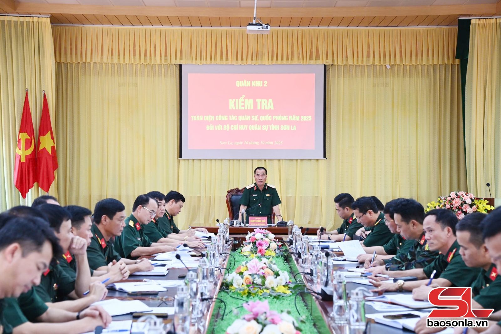 Phát biểu tại cuộc làm việc với Bộ CHQS tỉnh, Thiếu tướng Nguyễn Đăng Khải yêu cầu Đảng ủy, Bộ CHQS tỉnh rà soát và hoàn thành toàn bộ chỉ tiêu, nhiệm vụ đã xác định trong kế hoạch, nghị quyết năm và nhiệm kỳ đã xác định; thường xuyên kiện toàn, nâng cao hiệu quả hoạt động của Ban Chỉ huy phòng thủ dân sự các cấp, phát huy “4 tại chỗ” trong ứng phó, khắc phục hậu quả thiên tai, thảm họa. Tập trung chỉ đạo Ban Chỉ huy Phòng thủ khu vực 3 - Mai Sơn làm tốt công tác chuẩn bị cho diễn tập làm điểm cho Quân khu và Bộ Quốc phòng. Chủ động trong tham mưu, chỉ đạo, triển khai công tác tuyển quân năm 2026; tham mưu lựa chọn, bố trí đầy đủ cán bộ chỉ huy Ban CHQS xã, phường có đủ phẩm chất, trình độ, năng lực đáp ứng yêu cầu nhiệm vụ. Tiếp tục xây dựng cơ quan, đơn vị Bộ CHQS tỉnh vững mạnh toàn diện “Mẫu mực, tiêu biểu” và triển khai đồng bộ hoạt động công tác đảng, công tác chính trị, công tác hậu cần - kỹ thuật cho các nhiệm vụ...