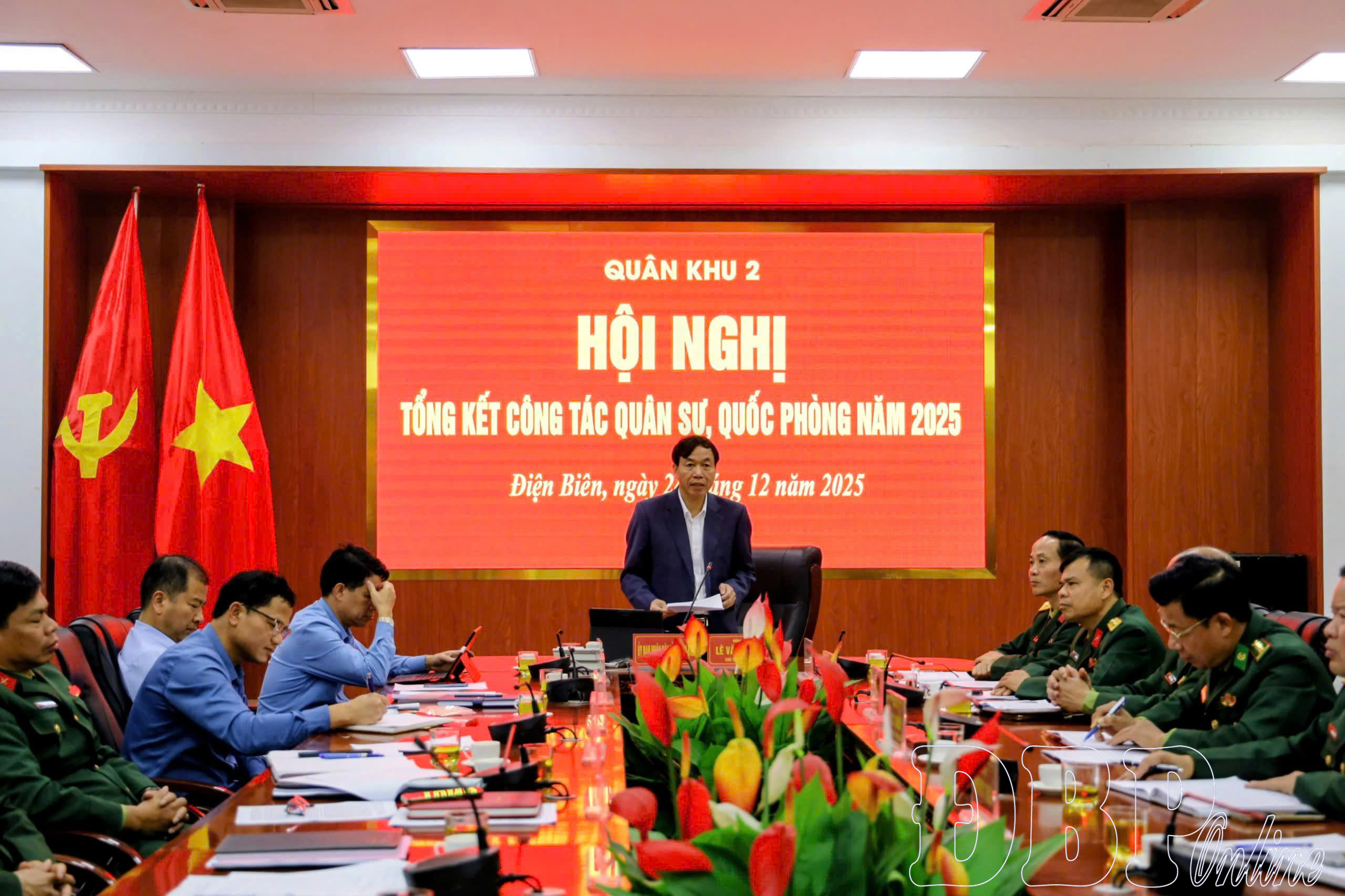 Sau khi nghe báo cáo về thực hiện nhiệm vụ quân sự, quốc phòng năm 2025 và phương hướng nhiệm vụ năm 2026 của Quân khu. Phát biểu tham luận tại hội nghị, Chủ tịch UBND tỉnh Lê Văn Lương cảm ơn Đảng ủy, Bộ Tư lệnh Quân khu 2 đã luôn quan tâm lãnh đạo, chỉ đạo, hỗ trợ kịp thời, hiệu quả, góp phần quan trọng giúp tỉnh hoàn thành tốt nhiệm vụ quân sự, quốc phòng. Đặc biệt là sự giúp đỡ thiết thực của lực lượng vũ trang Quân khu trong công tác phòng, chống và khắc phục hậu quả thiên tai, bão lũ trên địa bàn trong thời gian qua. Đồng thời, nhấn mạnh và làm rõ thêm một số kết quả đạt được trong công tác quản lý nguồn lực lượng dự bị động viên và nguồn sẵn sàng nhập ngũ; công tác tuyển chọn và gọi công dân nhập ngũ trên địa bàn tỉnh trong năm qua.