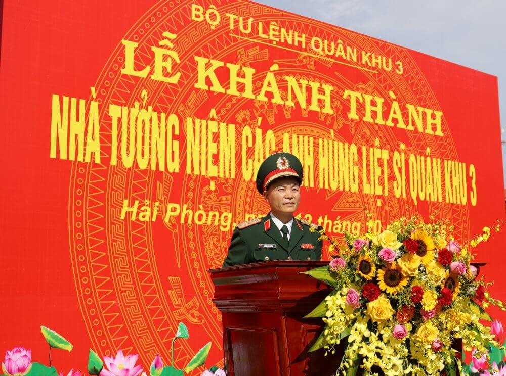 Thiếu tướng Lương Văn Kiểm, Phó Bí thư Đảng ủy, Tư lệnh Quân khu phát biểu tại Lễ khánh thành.