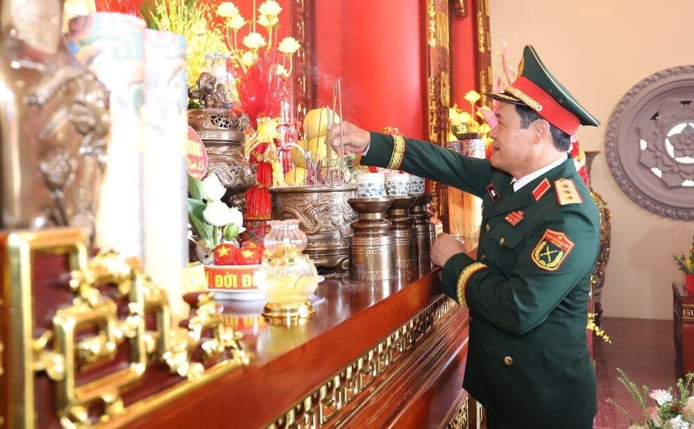 Đại tướng, Anh hùng LLVT nhân dân Phạm Văn Trà, nguyên Ủy viên Bộ Chính trị, nguyên Bộ trưởng Bộ Quốc phòng dâng hương tại Nhà tưởng niệm các Anh hùng liệt sĩ LLVT Quân khu 3.