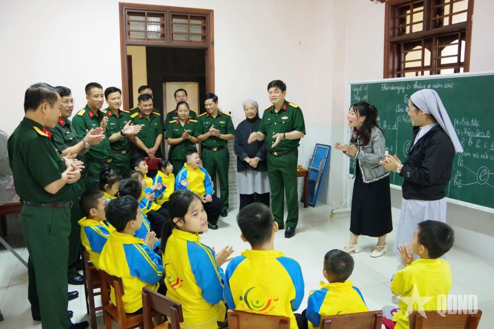 Đoàn công tác Ban Chỉ đạo Đề án 2036 Quân khu 4 thăm các cháu đang được nuôi dưỡng, học tập tại Trung tâm hỗ trợ phát triển giáo dục hòa nhập trẻ khuyết tật Hồng Lĩnh.