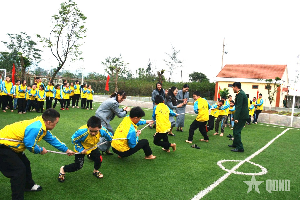 Thời gian qua, Bộ CHQS tỉnh Hà Tĩnh đã phối hợp với các ban, ngành, đoàn thể địa phương xây dựng tặng trung tâm khu vui chơi, giải trí và khu nhà ăn cho các cháu với tổng kinh phí là 445 triệu đồng và gần 400 ngày công của cán bộ, nhân viên, dân quân tự vệ nhằm hỗ trợ trung tâm bảo đảm nơi ăn uống, rèn luyện sức khỏe trong sinh hoạt, học tập giúp các cháu phát triển thể chất, hòa nhập cộng đồng.