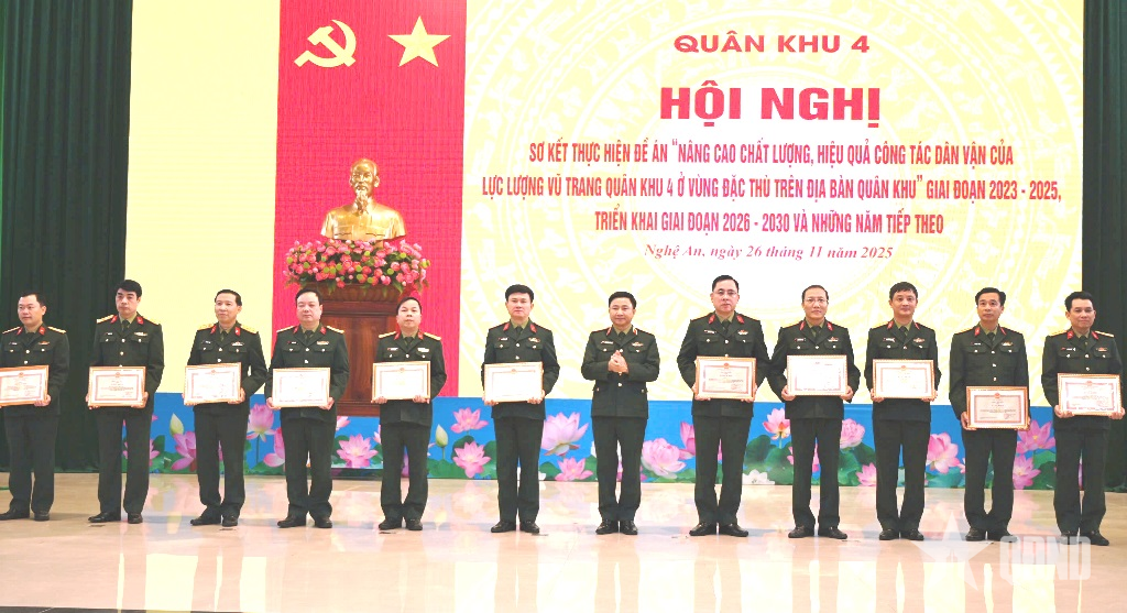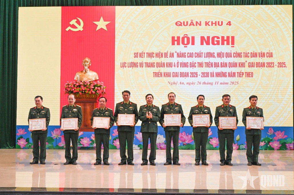 Tại hội nghị, Bộ tư lệnh Quân khu 4 đã trao Bằng khen tặng 11 tập thể và 12 cá nhân có thành tích xuất sắc trong thực hiện Đề án.