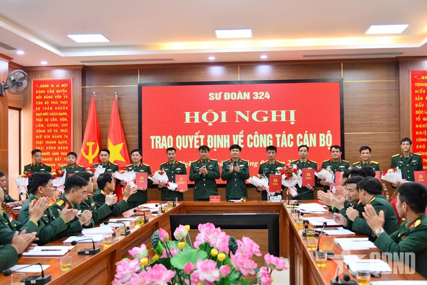 Tại hội nghị, lãnh đạo, chỉ huy Sư đoàn 324 đã công bố và trao các quyết định của Thường vụ Đảng ủy Quân khu 4 về công tác cán bộ; đồng thời tặng hoa chúc mừng các đồng chí là cán bộ của Sư đoàn được điều động, bổ nhiệm giữ chức Chỉ huy trưởng, Phó chỉ huy trưởng Ban chỉ huy Quân sự (CHQS) cấp xã.